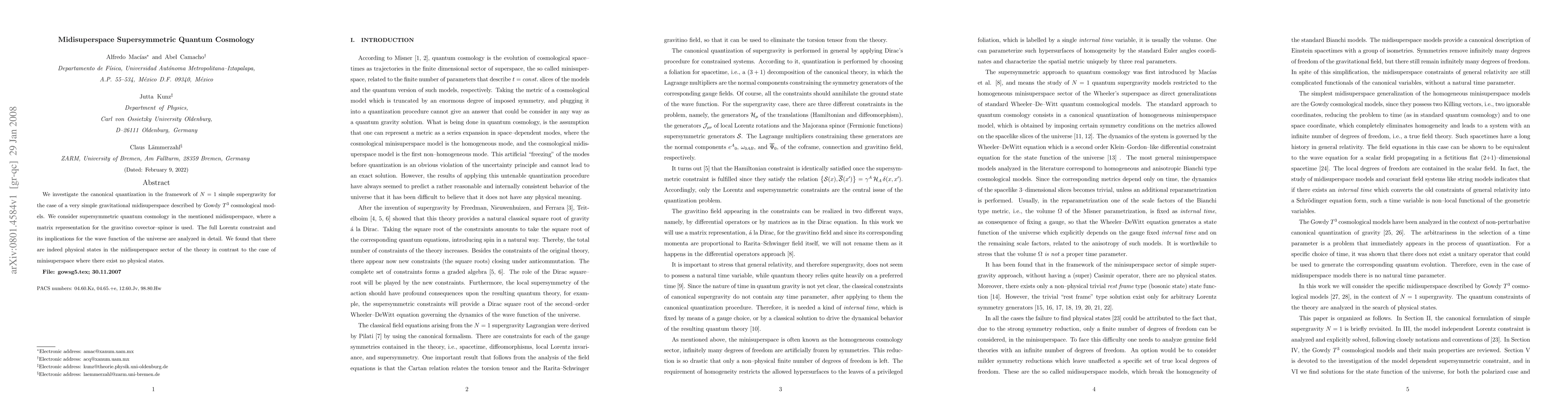 This paper explores the canonical quantization of N=1 simple supergravity within a midisuperspace framework using Gowdy $T^3$ cosmological models, focusing on supersymmetric quantum cosmology. The study reveals the existence of physical states in the midisuperspace sector, unlike the minisuperspace case, and analyzes the implications of the full Lorentz constraint on the wave function of the universe.