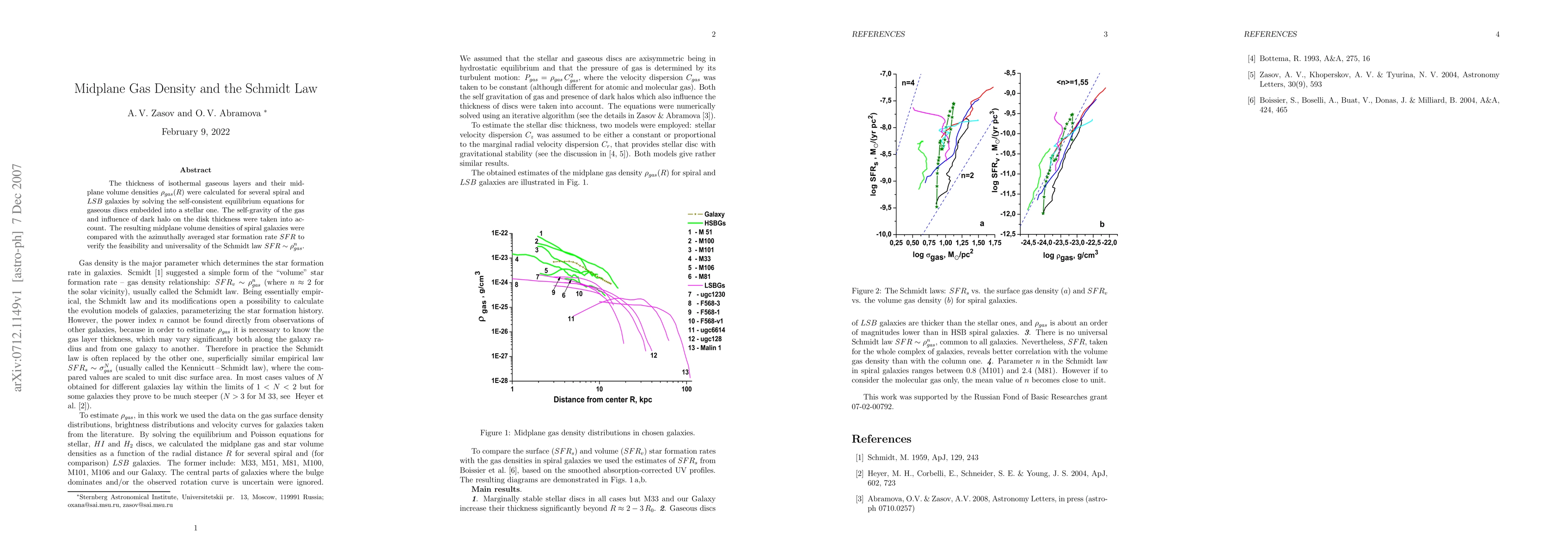 The thickness of isothermal gaseous layers and their midplane volume densities \rho_{gas}(R) were calculated for several spiral and LSB galaxies by solving the self-consistent equilibrium equations for gaseous discs embedded into a stellar one. The self-gravity of the gas and influence of dark halo on the disk thickness were taken into account. The resulting midplane volume densities of spiral galaxies were compared with the azimuthally averaged star formation rate SFR to verify the feasibility and universality of the Schmidt law SFR ~ \rho_{gas}^n.