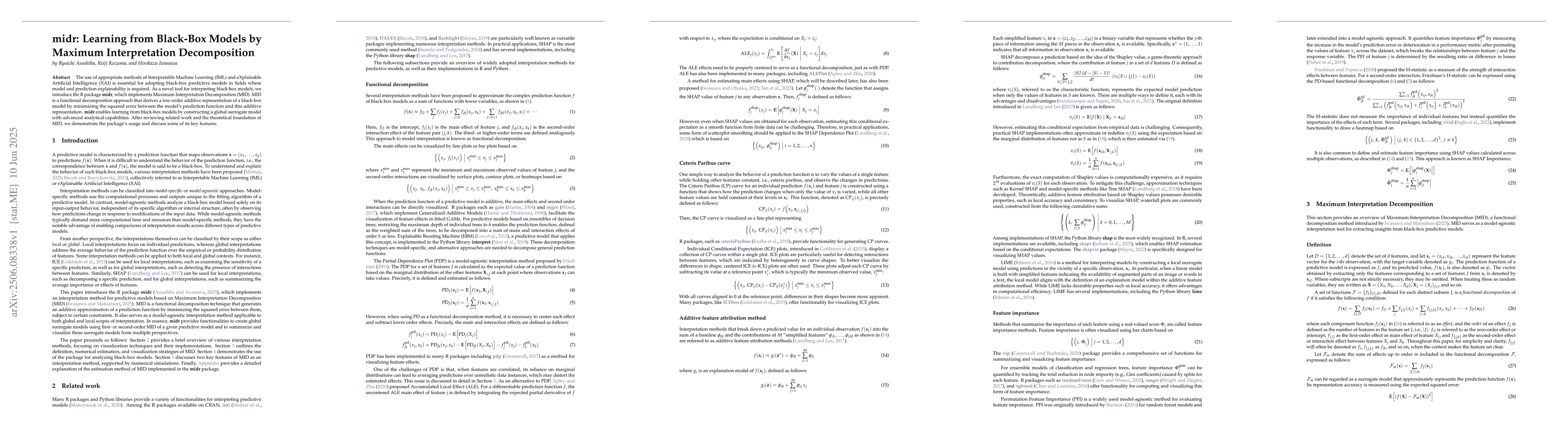 midr package introduces Maximum Interpretation Decomposition (MID) for interpreting black-box models, enabling learning from these models with advanced analytical capabilities.