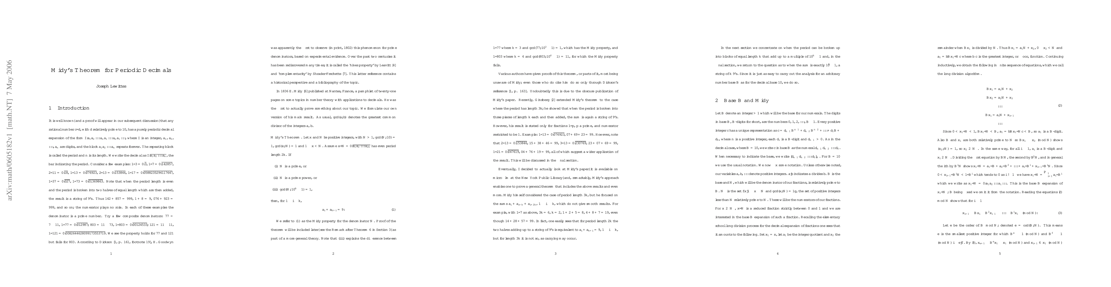 The decimal expansion of 1/7 is 0.142857142857..., the block 142857 repeating forever. We call 142857 the period and its length is 6 = 2x3. If the period is broken into 2 pieces each of length 3 which are then added, the result is 142 + 857 = 999; similarly 14 + 28 + 57 = 99. Other periodic decimals show the same phenomenon while others do not. The general question then arises: Let a/N be a fraction with denominator prime to 10, having decimal expansion with period length dk, if the period is broken into d pieces of length k which are then added, when will the sum be 99...9, a block of k 9's? In 1836 E. Midy published an article analyzing this question and gave sufficient conditions in certain cases. We put the problem in a more general setting, working in an arbitrary number base B, and obtain new results. However, some open questions still remain.