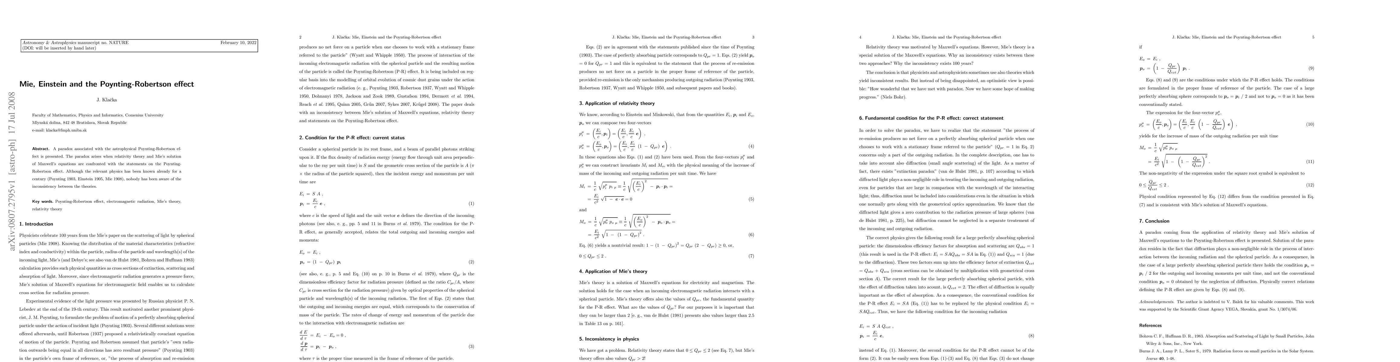 A paradox associated with the astrophysical Poynting-Robertson effect is presented. The paradox arises when relativity theory and Mie's solution of Maxwell's equations are confronted with the statements on the Poynting-Robertson effect. Although the relevant physics has been known already for a century (Poynting 1903, Einstein 1905, Mie 1908), nobody has been aware of the inconsistency between the theories.