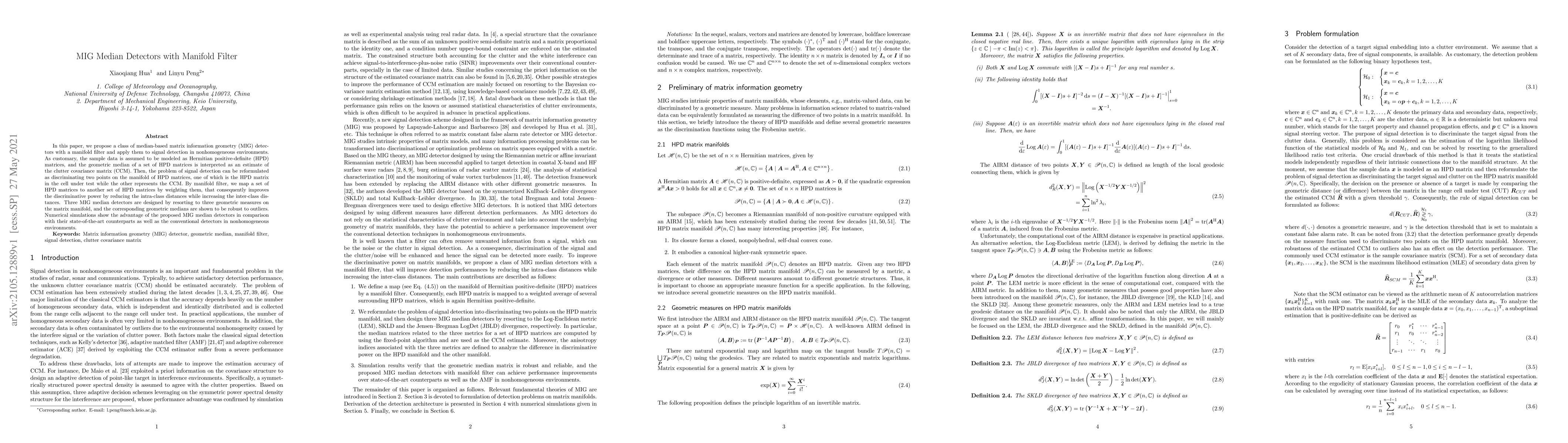 The paper introduces MIG median detectors with a manifold filter, which improve discriminative power on the matrix manifold for signal detection in nonhomogeneous environments.