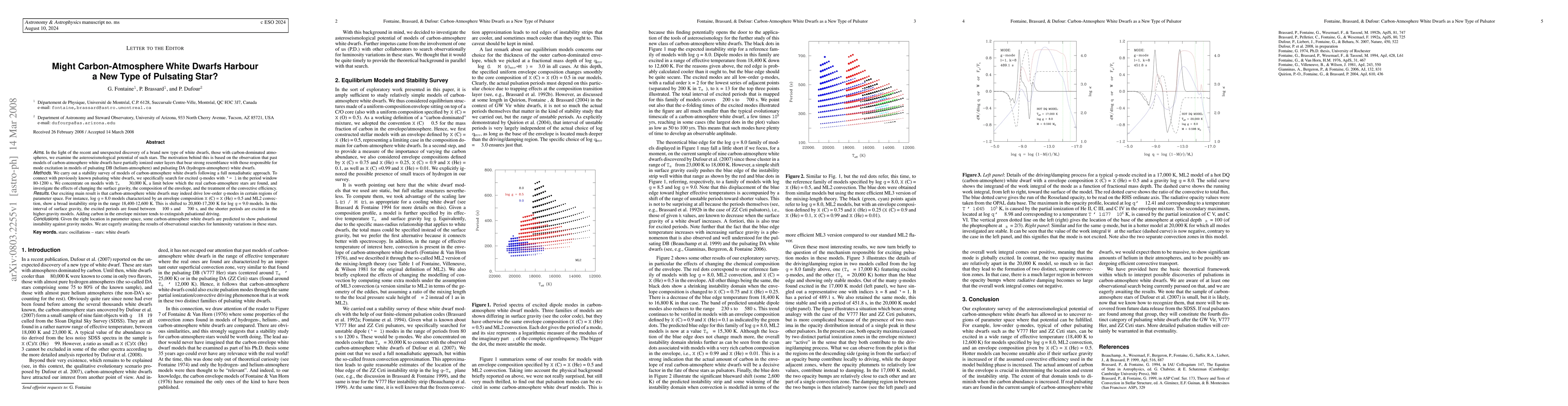 This paper explores the possibility that newly discovered carbon-atmosphere white dwarfs may exhibit pulsational instability, similar to pulsating DB and DA white dwarfs. The study anticipates that some of these stars could show gravity mode pulsations, pending observational confirmation.