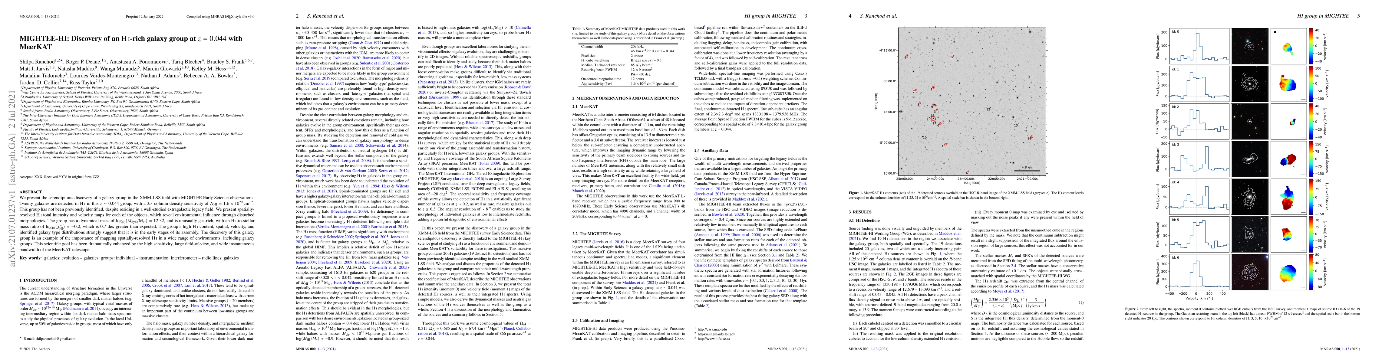 The MIGHTEE Early Science observations with MeerKAT serendipitously discovered an HI-rich galaxy group at z = 0.044 in the XMM-LSS field, comprising 20 galaxies with unusually high HI content. The group's gas-rich nature and disturbed morphologies suggest it is in the early stages of assembly.