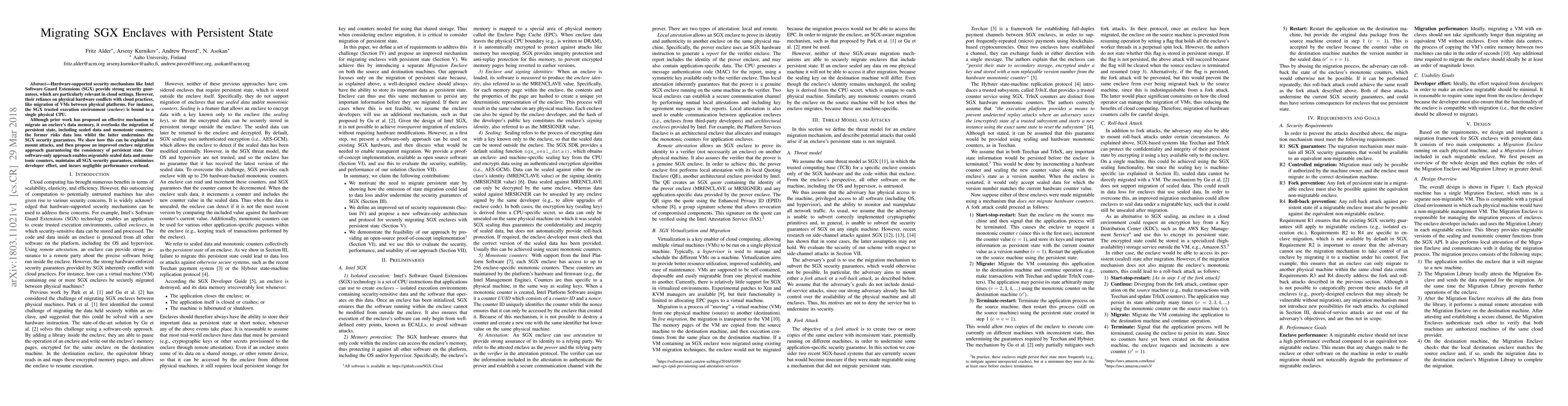 Researchers develop a software-only approach to migrate SGX enclaves while preserving persistent state, ensuring security guarantees and minimizing developer effort.