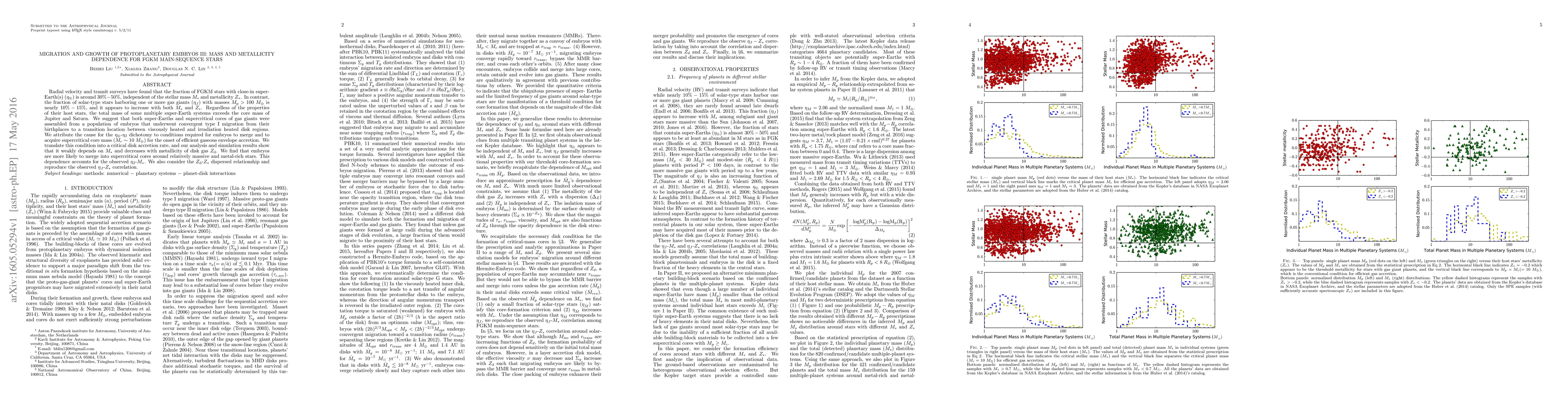 The paper explores the relationship between stellar mass, metallicity, and the presence of super-Earths and gas giants. It suggests that both super-Earths and supercritical cores of gas giants form from embryos undergoing convergent migration, with merging into supercritical cores more likely around massive, metal-rich stars. The study attributes the observed differences in gas giant occurrence to critical disk accretion rates, which depend weakly on stellar mass but decrease with disk metallicity.