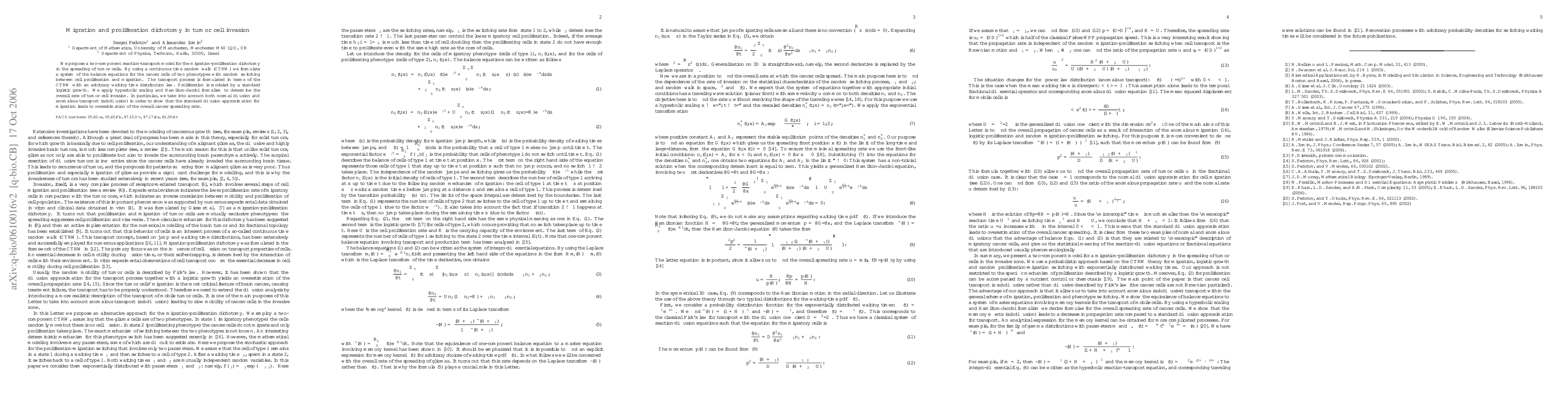 A new model proposes that tumor cell invasion is a result of a balance between proliferation and migration, with the latter being underestimated using traditional diffusion approximations.