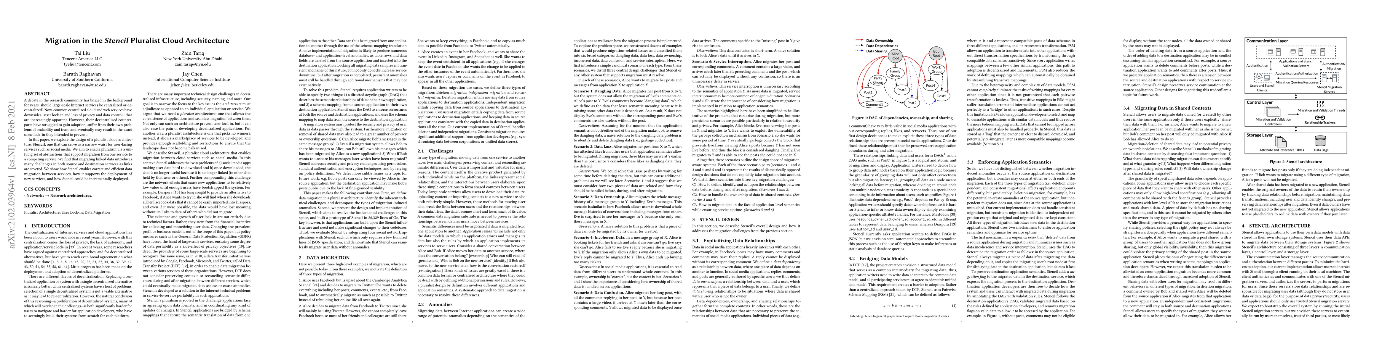 This paper explores Stencil, a pluralist cloud architecture designed to enable migration between decentralized services, addressing issues like user lock-in and privacy. It demonstrates Stencil's ability to facilitate correct and efficient data migration while supporting the deployment of new services.