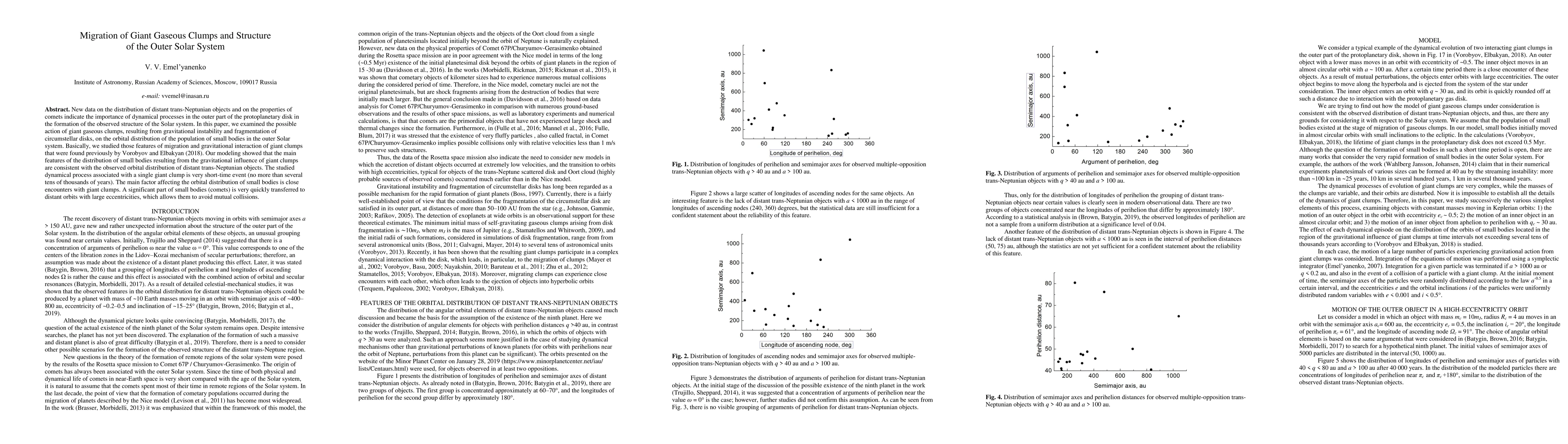 This paper explores how giant gaseous clumps from gravitational instability in the protoplanetary disk influenced the orbital distribution of distant trans-Neptunian objects and comets, finding that their migration and gravitational interactions align with observed patterns. The study concludes that close encounters with these clumps rapidly alter small bodies' orbits, often sending them to distant, eccentric paths to avoid collisions.