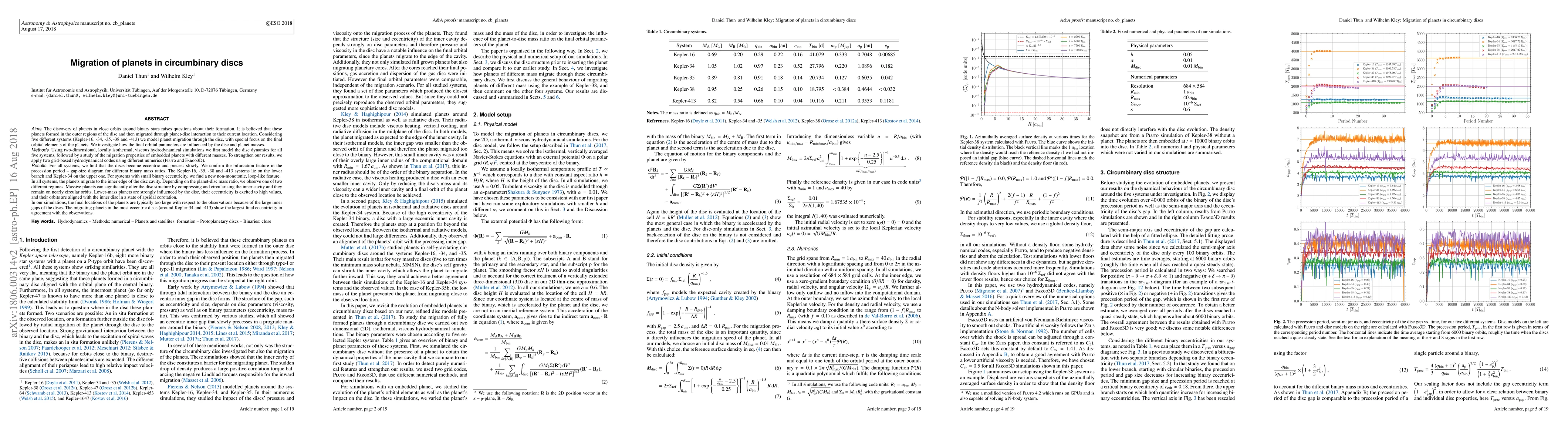 This paper investigates the migration of planets in circumbinary discs around binary star systems, using simulations to model the disc dynamics and planet migration. The study finds that planets migrate to the inner edge of the disc, with their final orbital parameters influenced by the planet-disc mass ratio, leading to either circular or highly eccentric orbits.