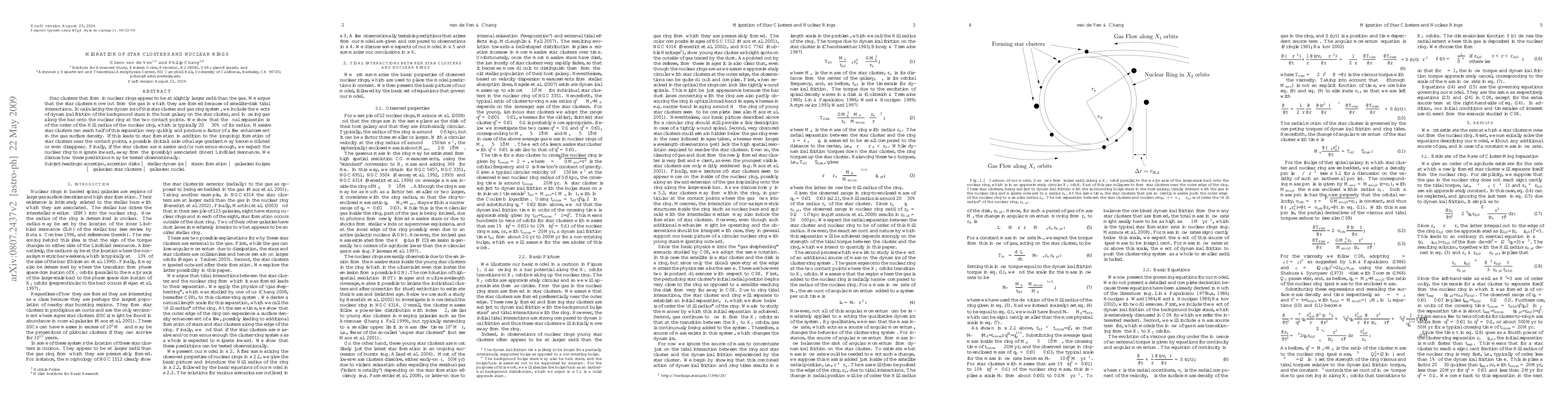 Star clusters in nuclear rings migrate out due to satellite-disk tidal interactions, potentially leading to dilution of age gradients and inward migration of the ring.