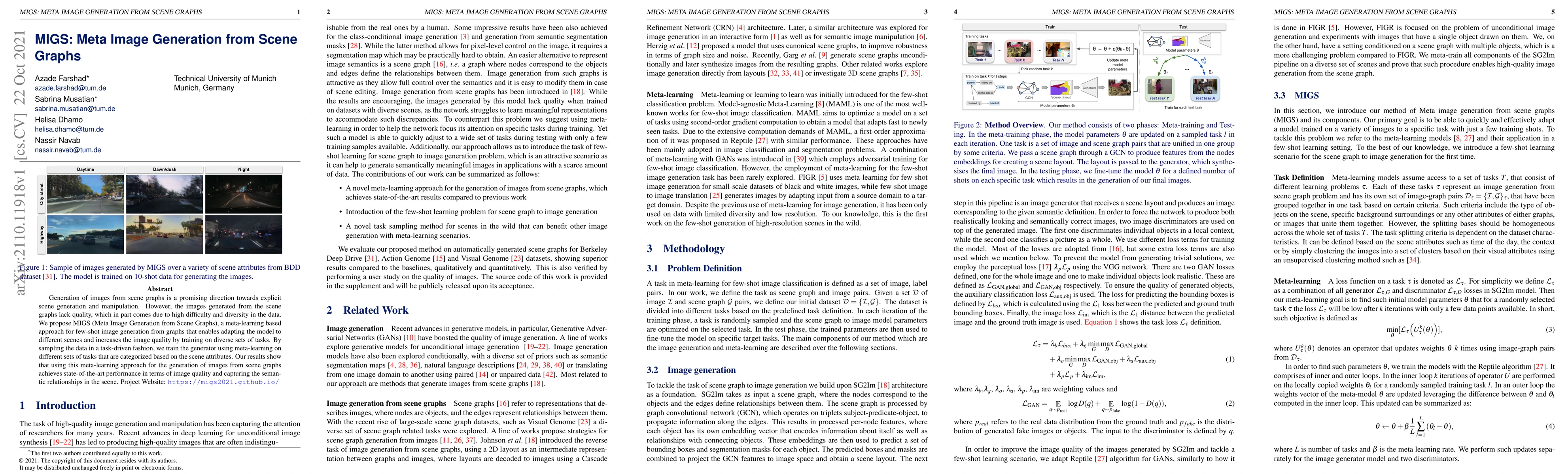 MIGS is a meta-learning approach for generating high-quality images from scene graphs, addressing the challenge of low image quality due to data diversity. It trains the model on diverse tasks categorized by scene attributes, achieving state-of-the-art performance in image quality and semantic relationship capture.