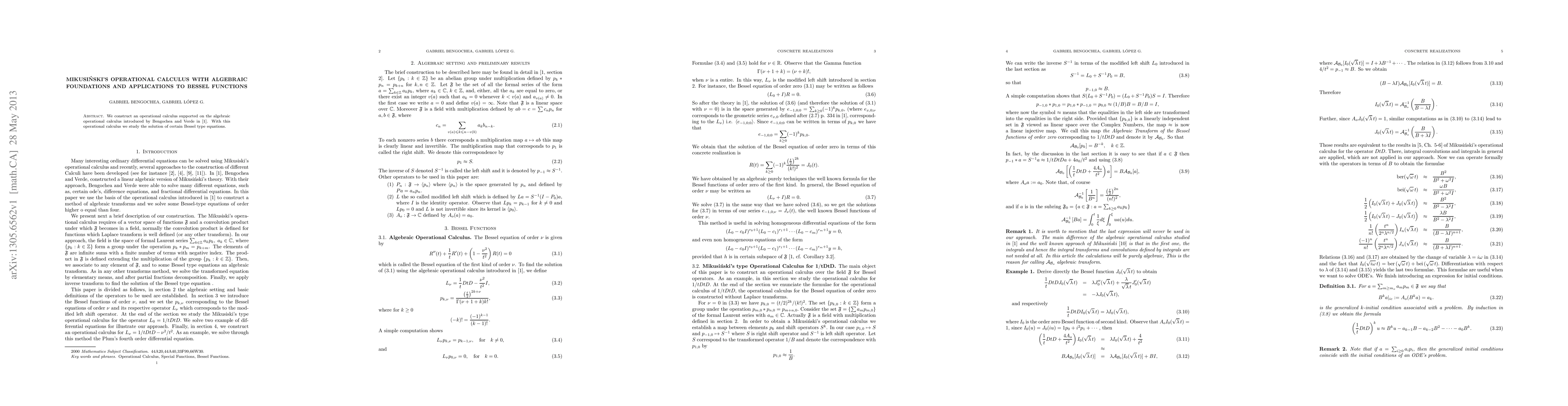 We construct an operational calculus supported on the algebraic operational calculus introduced by Bengochea and Verde. With this operational calculus we study the solution of certain Bessel type equations.