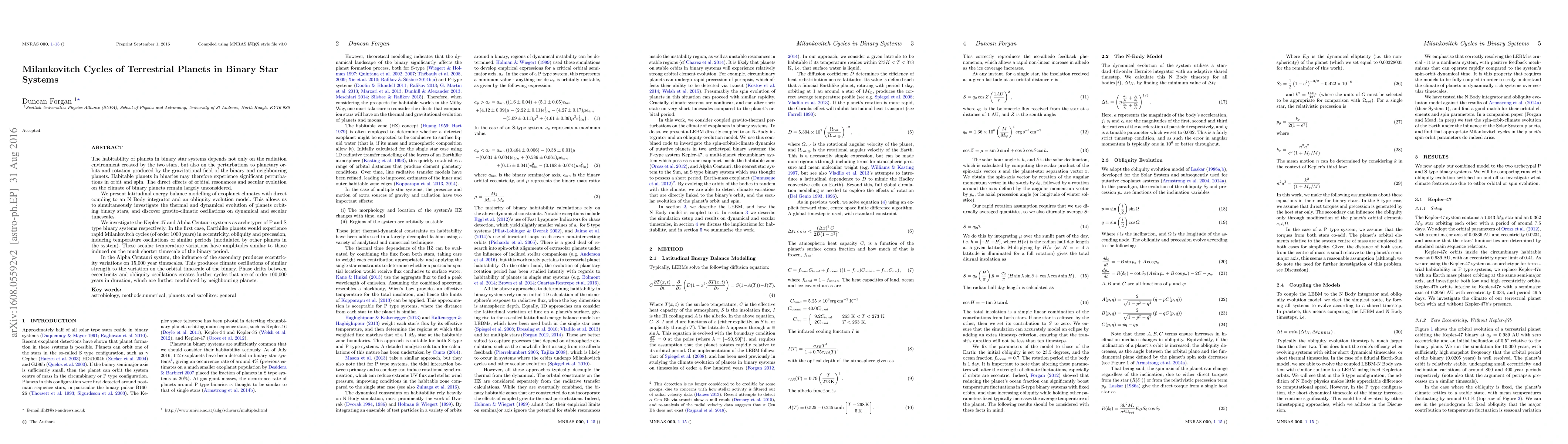 This paper explores the impact of Milankovitch cycles on the climate of planets in binary star systems, using latitudinal energy balance models coupled with N Body simulations. It finds significant orbital and spin perturbations in binary systems, leading to rapid climate oscillations in systems like Kepler-47 and Alpha Centauri, with cycles spanning from thousands to hundreds of thousands of years.