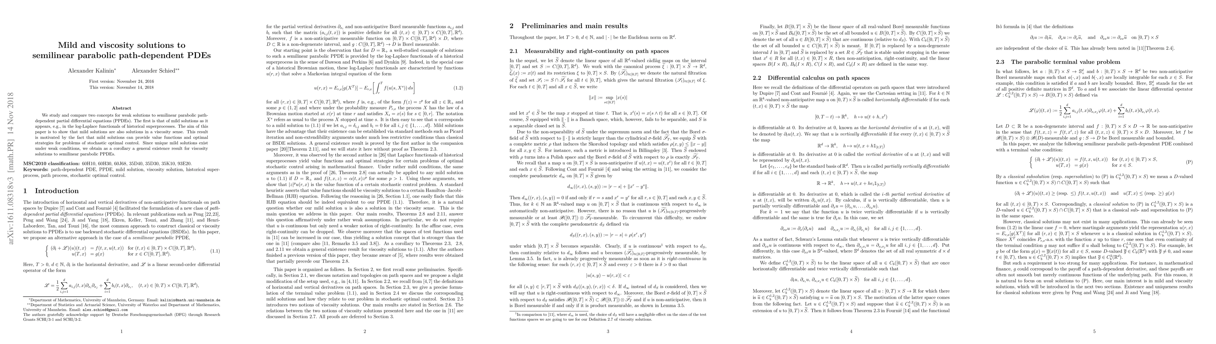 This paper investigates mild solutions to semilinear parabolic path-dependent PDEs and demonstrates their equivalence to viscosity solutions. The study highlights the significance of mild solutions in providing value functions and optimal strategies for stochastic optimal control problems.