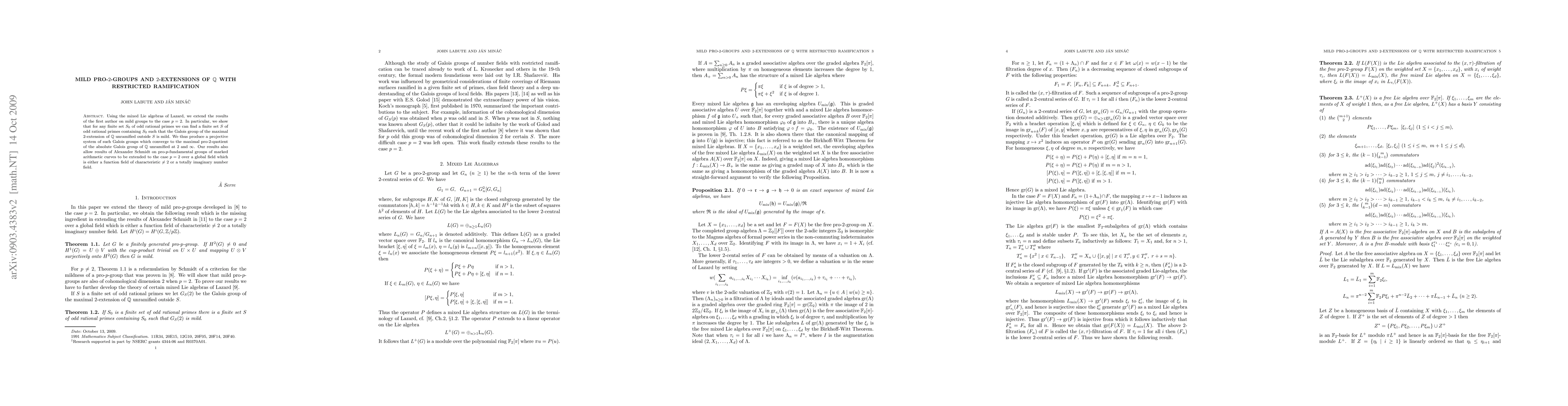 Researchers extend their previous work on mild groups to the case p=2, showing that a Galois group of a 2-extension of Q can be made mild for any finite set of odd primes, leading to a projective system converging to the maximal pro-2-quotient of the absolute Galois group of $oxed{Q}$.