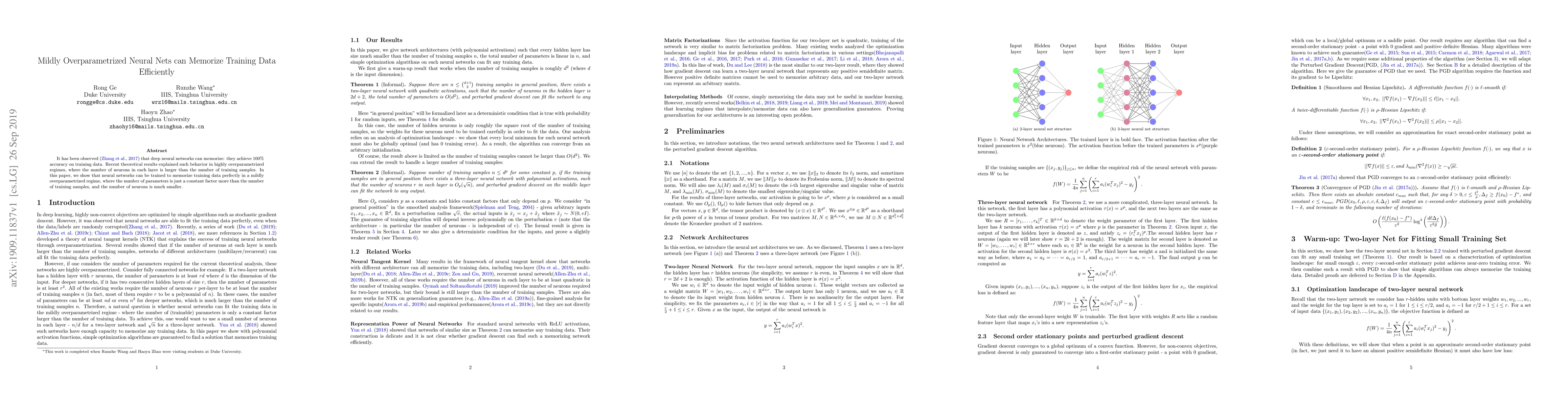This paper demonstrates that neural networks can memorize training data efficiently even when only mildly overparametrized, with the number of parameters only slightly exceeding the number of training samples, contrary to previous findings that required much larger neuron counts.