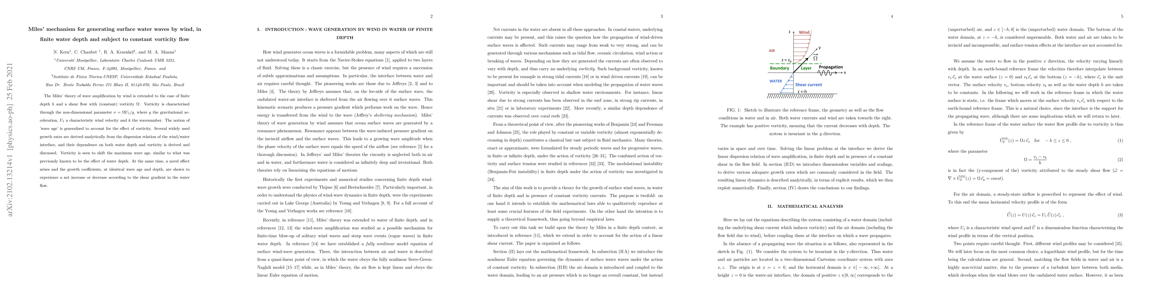 The Miles theory of wave amplification by wind is extended to account for vorticity in finite water depth, revealing that it shifts the maximum wave age and affects growth coefficients according to the shear gradient.