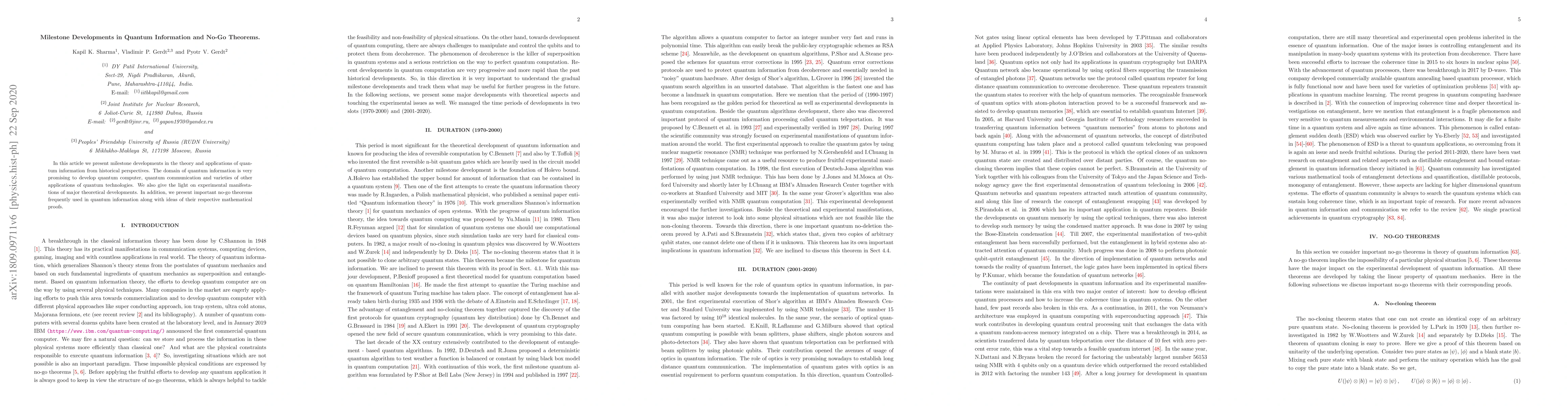 This paper reviews significant advancements in quantum information theory and applications, highlighting historical milestones and experimental validations. It also discusses crucial no-go theorems and their mathematical proofs that shape the field.