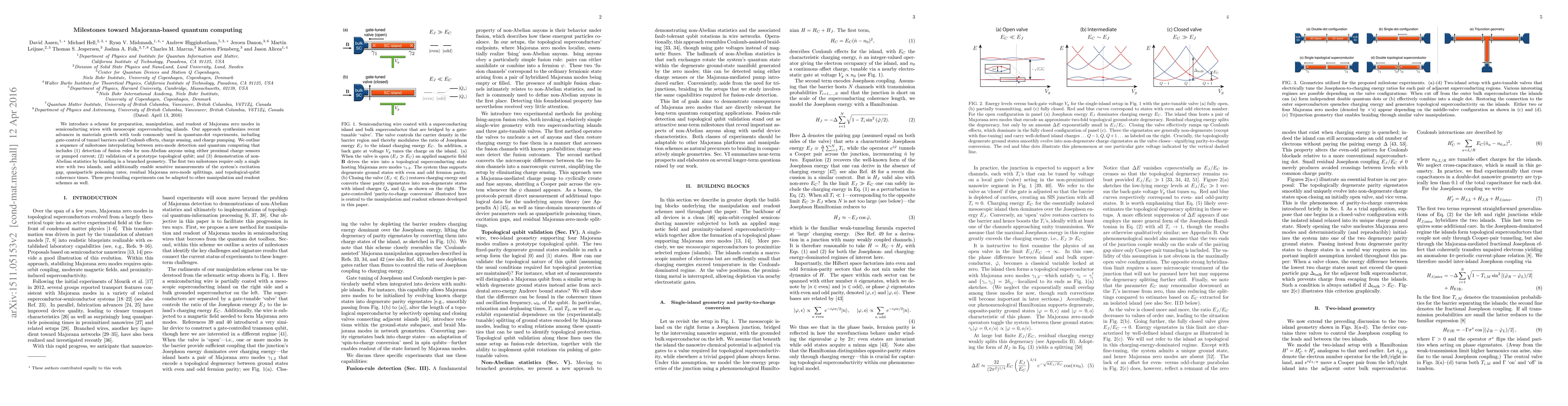 We introduce a scheme for preparation, manipulation, and readout of Majorana zero modes in semiconducting wires with mesoscopic superconducting islands. Our approach synthesizes recent advances in materials growth with tools commonly used in quantum-dot experiments, including gate-control of tunnel barriers and Coulomb effects, charge sensing, and charge pumping. We outline a sequence of milestones interpolating between zero-mode detection and quantum computing that includes (1) detection of fusion rules for non-Abelian anyons using either proximal charge sensors or pumped current; (2) validation of a prototype topological qubit; and (3) demonstration of non-Abelian statistics by braiding in a branched geometry. The first two milestones require only a single wire with two islands, and additionally enable sensitive measurements of the system's excitation gap, quasiparticle poisoning rates, residual Majorana zero-mode splittings, and topological-qubit coherence times. These pre-braiding experiments can be adapted to other manipulation and readout schemes as well.
