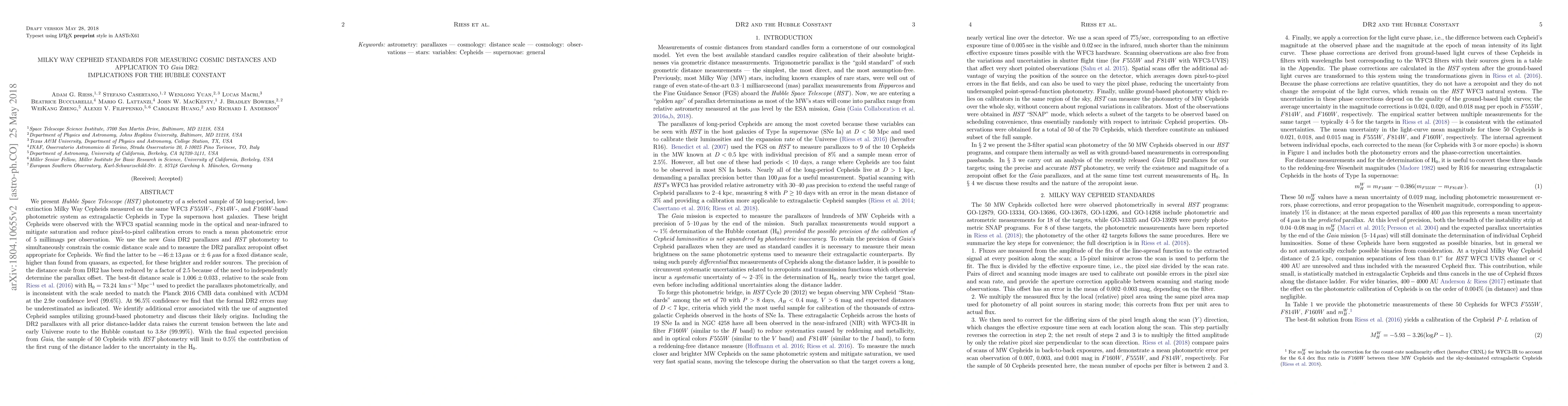 The research utilized HST photometry for 50 long-period, low-extinction Milky Way Cepheids, observed with WFC3 in F555W, F814W, and F160W bands, to simultaneously constrain the cosmic distance scale and determine the Gaia DR2 parallax zeropoint offset for Cepheids. They achieved a mean photometric error of 5 millimags per observation.