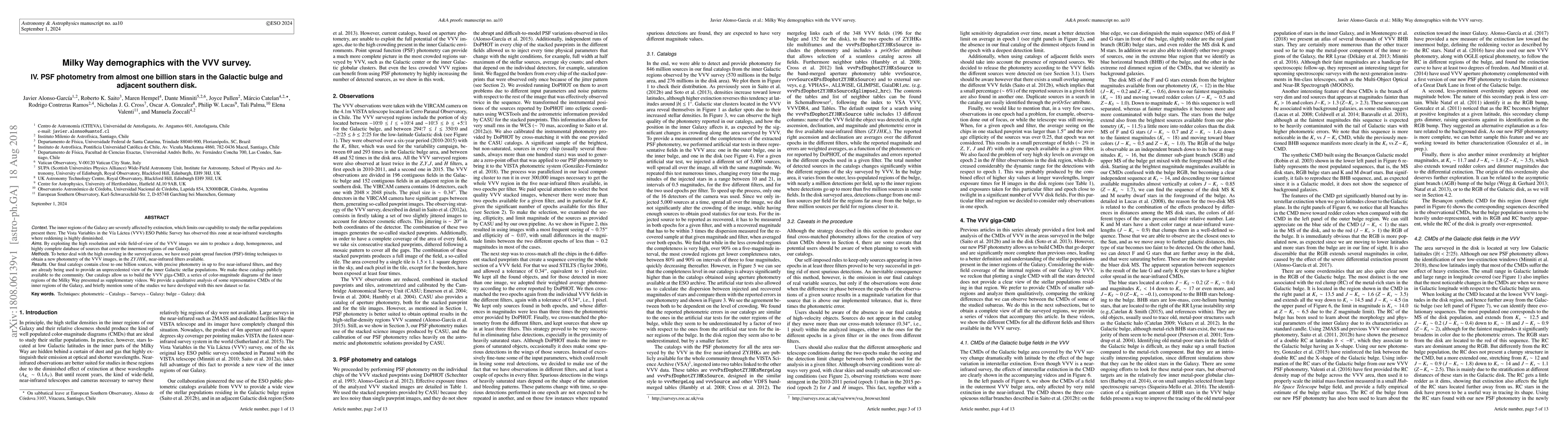 The VVV survey has produced a comprehensive database of nearly one billion stars in the Galactic bulge and adjacent southern disk using PSF photometry, overcoming extinction issues in near-infrared wavelengths. This dataset enables unprecedented insights into the Milky Way's inner stellar populations, with catalogs and color-magnitude diagrams available for public use.