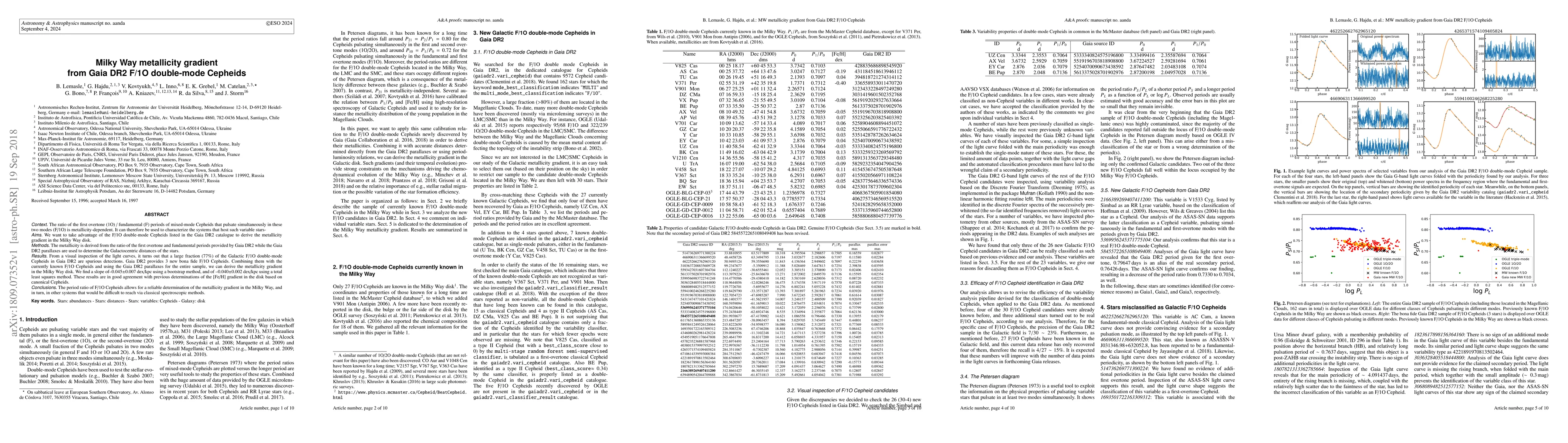 This paper uses Gaia DR2 data to derive the Milky Way's metallicity gradient by analyzing F/1O double-mode Cepheids, finding a slope of -0.045±0.007 dex/kpc, and confirming previous results with canonical Cepheids. The period ratio of these Cepheids provides a reliable alternative to traditional spectroscopic methods.
