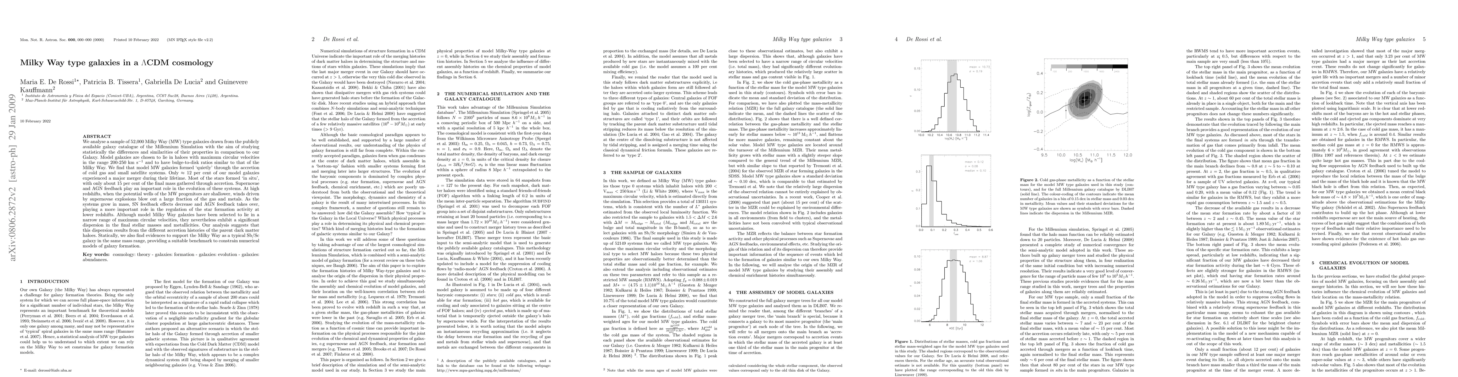 We analyse a sample of 52,000 Milky Way (MW) type galaxies drawn from the publicly available galaxy catalogue of the Millennium Simulation with the aim of studying statistically the differences and similarities of their properties in comparison to our Galaxy. Model galaxies are chosen to lie in haloes with maximum circular velocities in the range 200-250 km/seg and to have bulge-to-disk ratios similar to that of the Milky Way. We find that model MW galaxies formed quietly through the accretion of cold gas and small satellite systems. Only 12 per cent of our model galaxies experienced a major merger during their lifetime. Most of the stars formed in situ, with only about 15 per cent of the final mass gathered through accretion. Supernovae and AGN feedback play an important role in the evolution of these systems. At high redshifts, when the potential wells of the MW progenitors are shallower, winds driven by supernovae explosions blow out a large fraction of the gas and metals. As the systems grow in mass, SN feedback effects decrease and AGN feedback takes over, playing a more important role in the regulation of the star formation activity at lower redshifts. Although model Milky Way galaxies have been selected to lie in a narrow range of maximum circular velocities, they nevertheless exhibit a significant dispersion in the final stellar masses and metallicities. Our analysis suggests that this dispersion results from the different accretion histories of the parent dark matter haloes. Statically, we also find evidences to support the Milky Way as a typical Sb/Sc galaxy in the same mass range, providing a suitable benchmark to constrain numerical models of galaxy formation