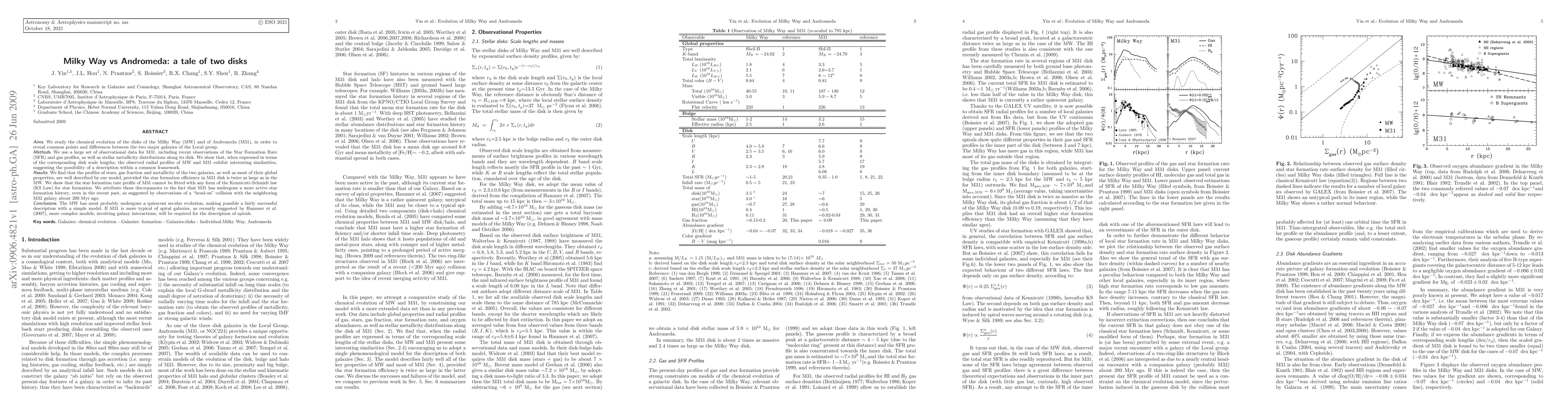 We study the chemical evolution of the disks of the Milky Way (MW) and of Andromeda (M31), in order to reveal common points and differences between the two major galaxies of the Local group. We use a large set of observational data for M31, including recent observations of the Star Formation Rate (SFR) and gas profiles, as well as stellar metallicity distributions along its disk. We show that, when expressed in terms of the corresponding disk scale lengths, the observed radial profiles of MW and M31 exhibit interesting similarities, suggesting the possibility of a description within a common framework. We find that the profiles of stars, gas fraction and metallicity of the two galaxies, as well as most of their global properties, are well described by our model, provided the star formation efficiency in M31 disk is twice as large as in the MW. We show that the star formation rate profile of M31 cannot be fitted with any form of the Kennicutt-Schmidt law (KS Law) for star formation. We attribute those discrepancies to the fact that M31 has undergone a more active star formation history, even in the recent past, as suggested by observations of a "head-on" collision with the neighboring M32 galaxy about 200 Myr ago. The MW has most probably undergone a quiescent secular evolution, making possible a fairly successful description with a simple model. If M31 is more typical of spiral galaxies, as recently suggested by Hammer et al. (2007), more complex models, involving galaxy interactions, will be required for the description of spirals.