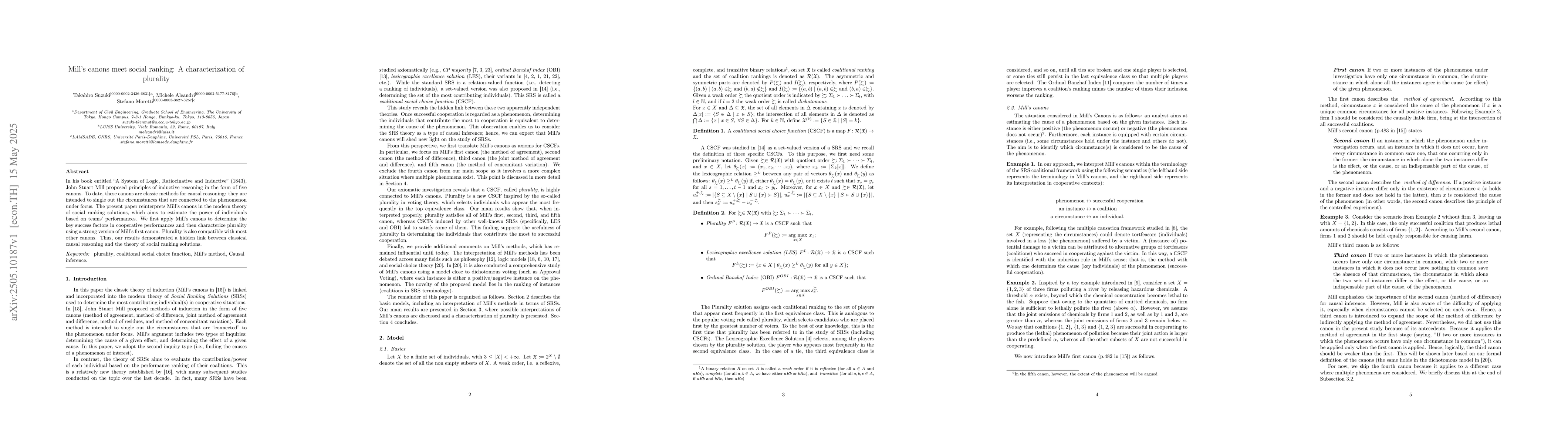 The reinterpretation of Mill's canons of inductive reasoning to characterize plurality within social ranking solutions.