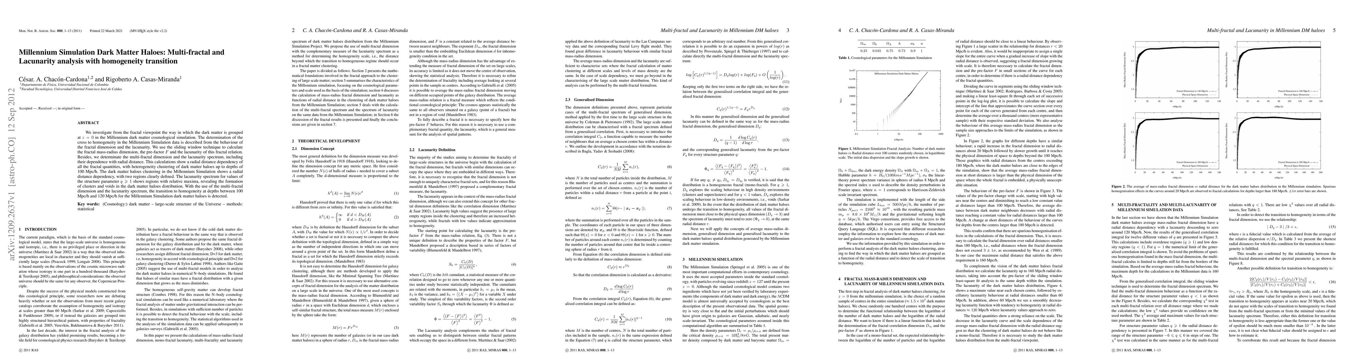 This paper analyzes the fractal and multi-fractal properties of dark matter haloes in the Millennium Simulation, revealing a radial distance dependency in clustering and identifying a transition to homogeneity at depths between 100 Mpc/h and 120 Mpc/h. The study uses fractal dimension, lacunarity, and multi-fractal analysis to characterize the structure of dark matter.
