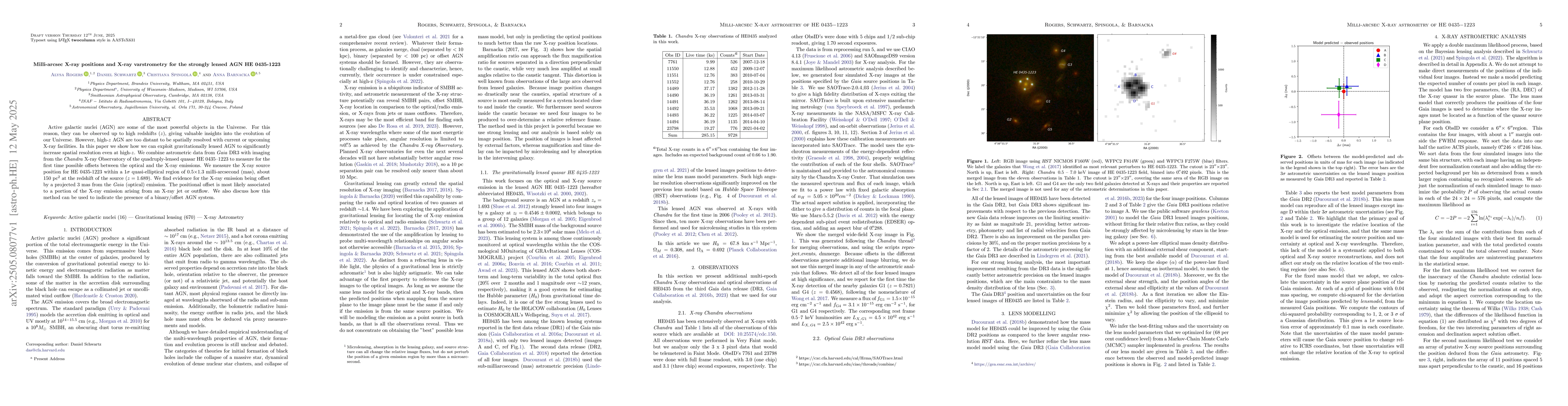 The research combines astrometric data from Gaia DR3 with imaging from the Chandra X-ray Observatory to study the gravitationally lensed quasar HE 0435--1223.
