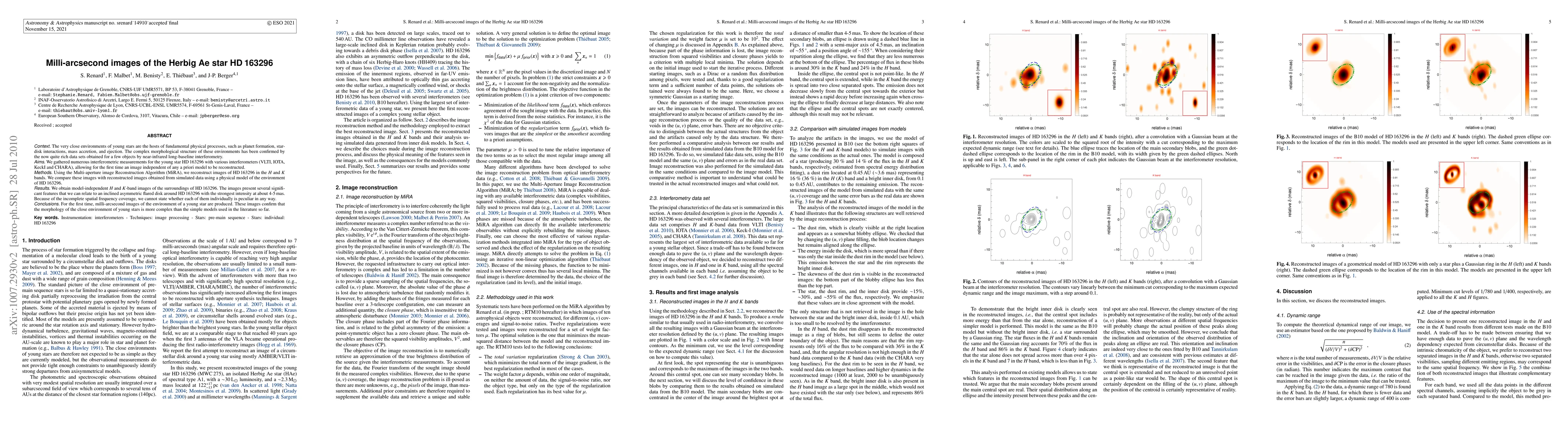 This research presents the first milli-arcsecond images of the young star HD 163296's environment, revealing a complex, inclined asymmetric flared disk with strongest intensity at 4-5 mas. These model-independent H and K-band images, reconstructed using MiRA, demonstrate that the close environment of young stars is more intricate than previous simple models suggested.