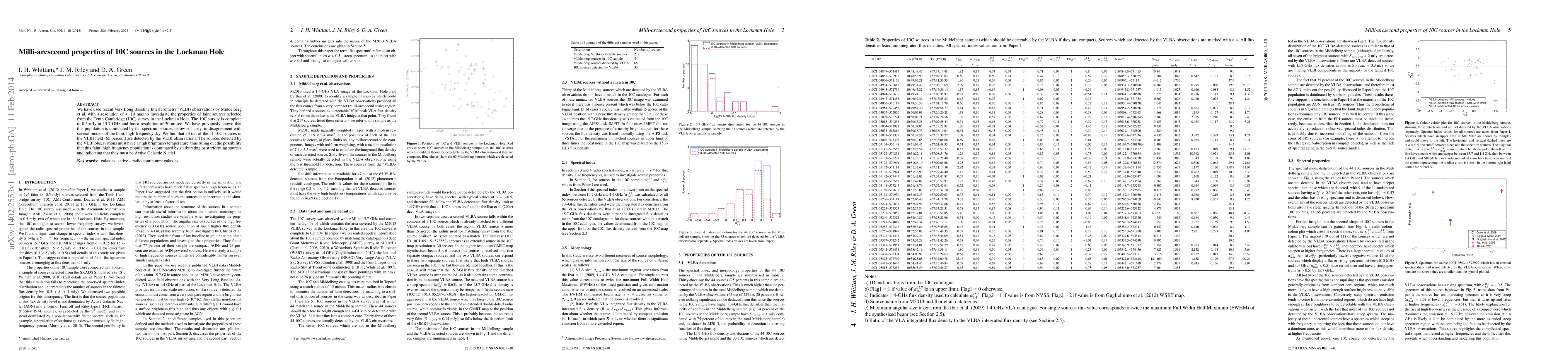 We have used recent Very Long Baseline Interferometry (VLBI) observations by Middelberg et al. with a resolution of $\approx 10$ mas to investigate the properties of faint sources selected from the Tenth Cambridge (10C) survey in the Lockman Hole. The 10C survey is complete to 0.5 mJy at 15.7 GHz and has a resolution of 30 arcsec. We have previously shown that this population is dominated by flat-spectrum sources below $\approx 1$ mJy, in disagreement with several models of the faint, high-frequency sky. We find that 33 out of the 51 10C sources in the VLBI field (65 percent) are detected by the VLBI observations. The sources detected by the VLBI observations must have a high brightness temperature, thus ruling out the possibility that this faint, high frequency population is dominated by starbursting or starforming sources and indicating that they must be Active Galactic Nuclei.