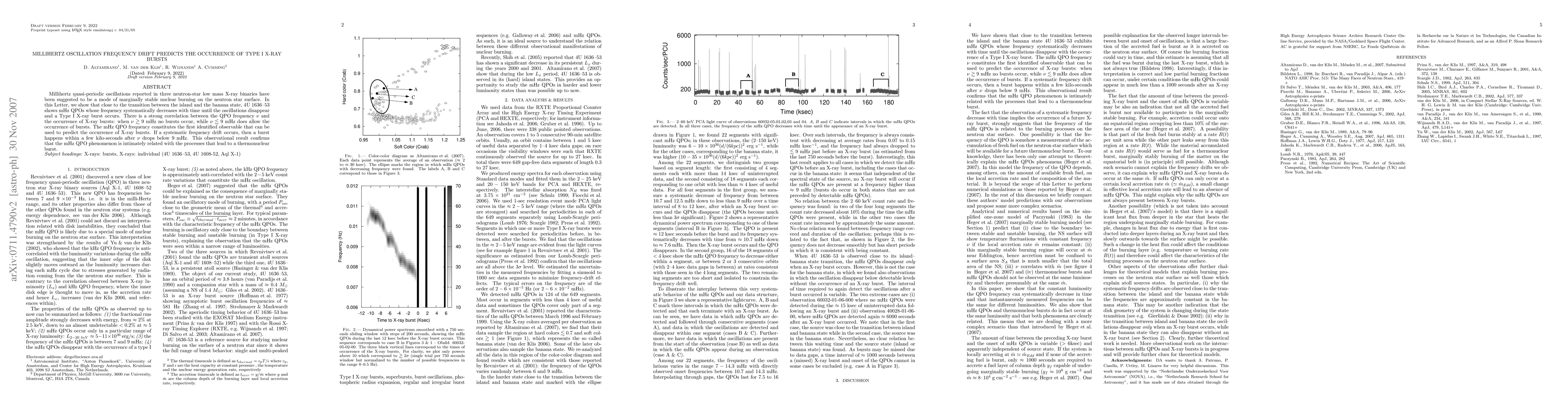 The research identifies a correlation between millihertz quasi-periodic oscillations (mHz QPOs) in neutron-star low mass X-ray binaries and the occurrence of Type I X-ray bursts. The frequency of mHz QPOs systematically decreases until a burst happens when the frequency drops below 9 mHz, establishing this frequency as a predictable marker for X-ray bursts.