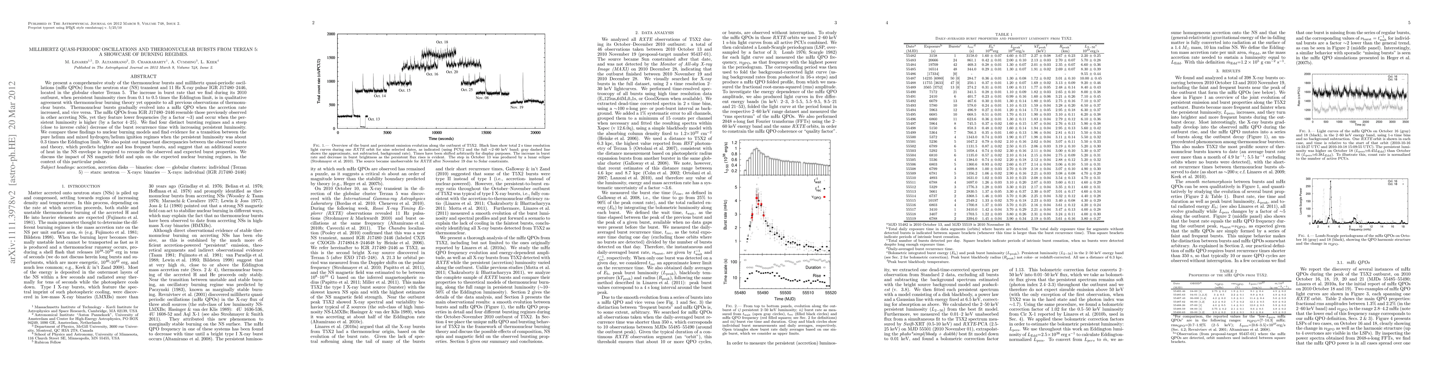 We present a comprehensive study of the thermonuclear bursts and millihertz quasi-periodic oscillations (mHz QPOs) from the neutron star (NS) transient and 11 Hz X-ray pulsar IGR J17480-2446, located in the globular cluster Terzan 5. The increase in burst rate that we found during its 2010 outburst, when persistent luminosity rose from 0.1 to 0.5 times the Eddington limit, is in qualitative agreement with thermonuclear burning theory yet opposite to all previous observations of thermonuclear bursts. Thermonuclear bursts gradually evolved into a mHz QPO when the accretion rate increased, and vice versa. The mHz QPOs from IGR J17480-2446 resemble those previously observed in other accreting NSs, yet they feature lower frequencies (by a factor ~3) and occur when the persistent luminosity is higher (by a factor 4-25). We find four distinct bursting regimes and a steep (close to inverse cubic) decrease of the burst recurrence time with increasing persistent luminosity. We compare these findings to nuclear burning models and find evidence for a transition between the pure helium and mixed hydrogen/helium ignition regimes when the persistent luminosity was about 0.3 times the Eddington limit. We also point out important discrepancies between the observed bursts and theory, which predicts brighter and less frequent bursts, and suggest that an additional source of heat in the NS envelope is required to reconcile the observed and expected burst properties. We discuss the impact of NS magnetic field and spin on the expected nuclear burning regimes, in the context of this particular pulsar.