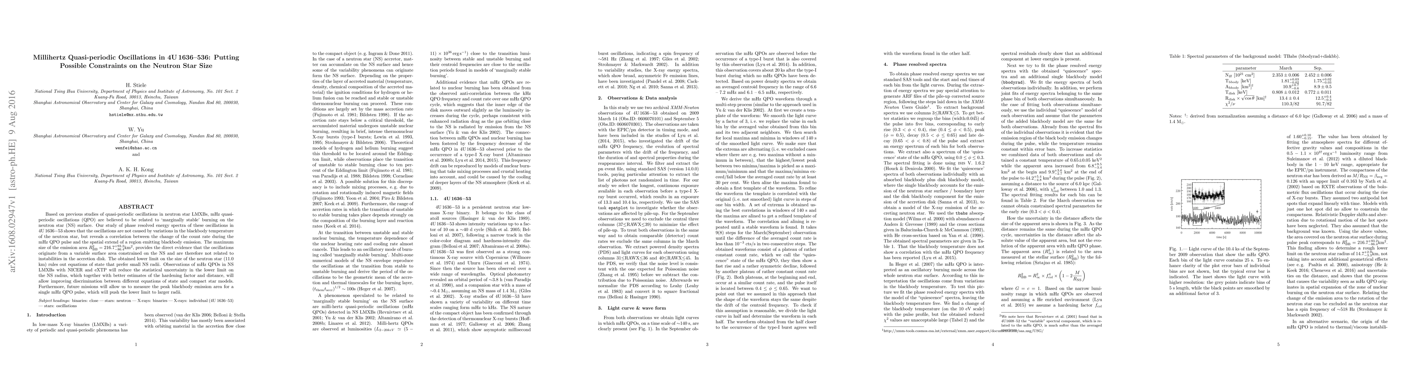 This study investigates mHz quasi-periodic oscillations (QPO) in the neutron star LMXB 4U 1636-536, finding they originate from variable surface area on the neutron star rather than disk instabilities. The derived lower limit for the neutron star radius (11.0 km) constrains possible equations of state, favoring larger radii.