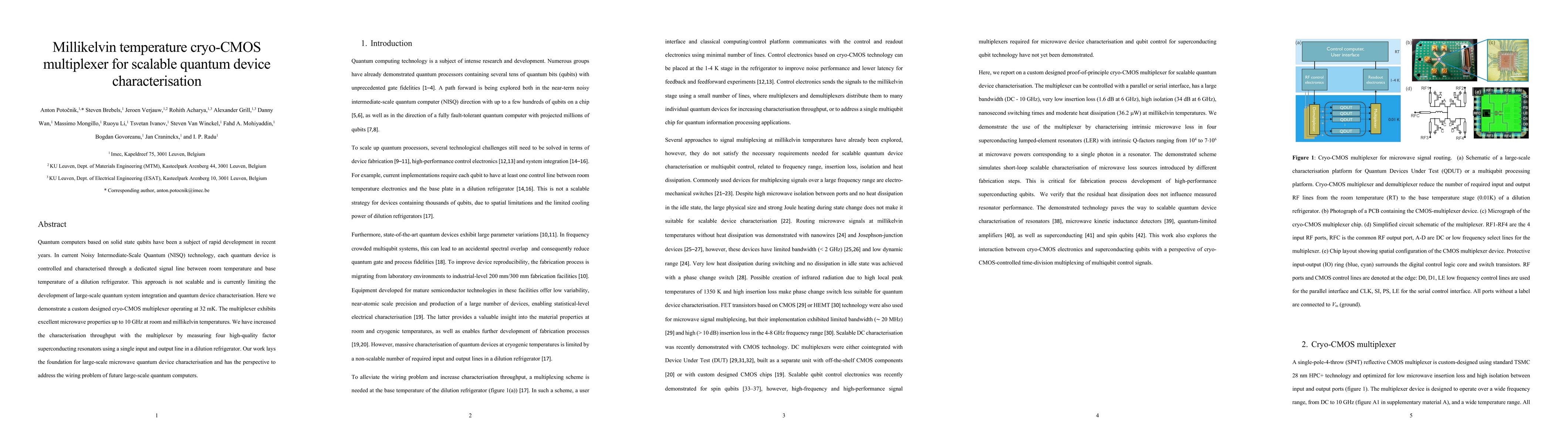 The development of custom cryo-CMOS multiplexers with low insertion loss and high isolation over a wide frequency range, suitable for scalable characterization of various quantum devices.