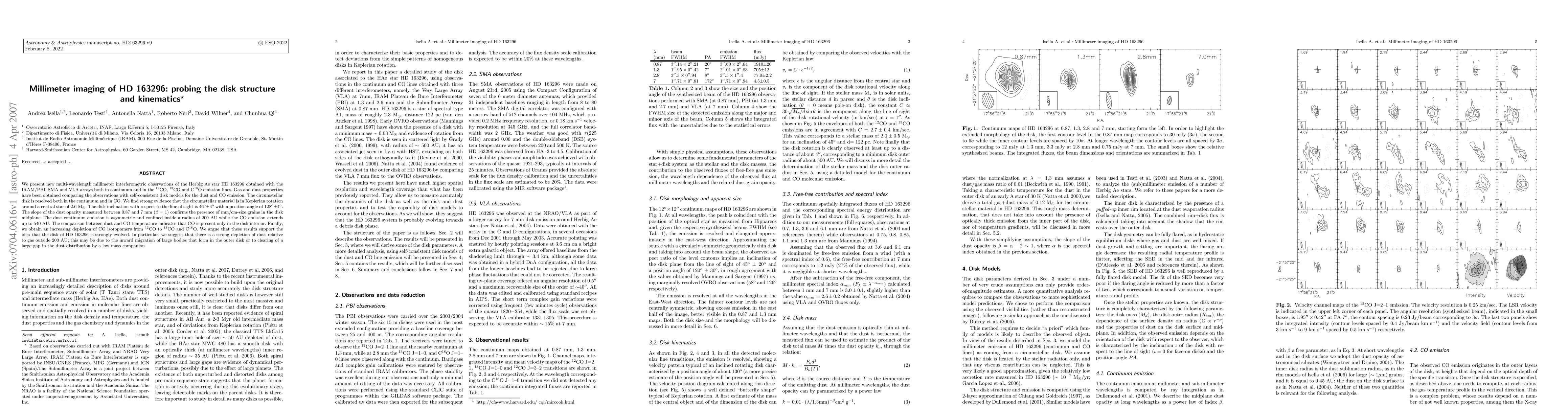 New millimeter interferometric observations reveal a strongly evolved circumstellar disk around HD 163296, with evidence of Keplerian rotation, asymmetric dust distribution, and depleted CO isotopomers. The findings suggest the presence of a large gap in the dust distribution outside 200 AU, possibly due to an inward-migrating companion or clearing by a low-mass companion.