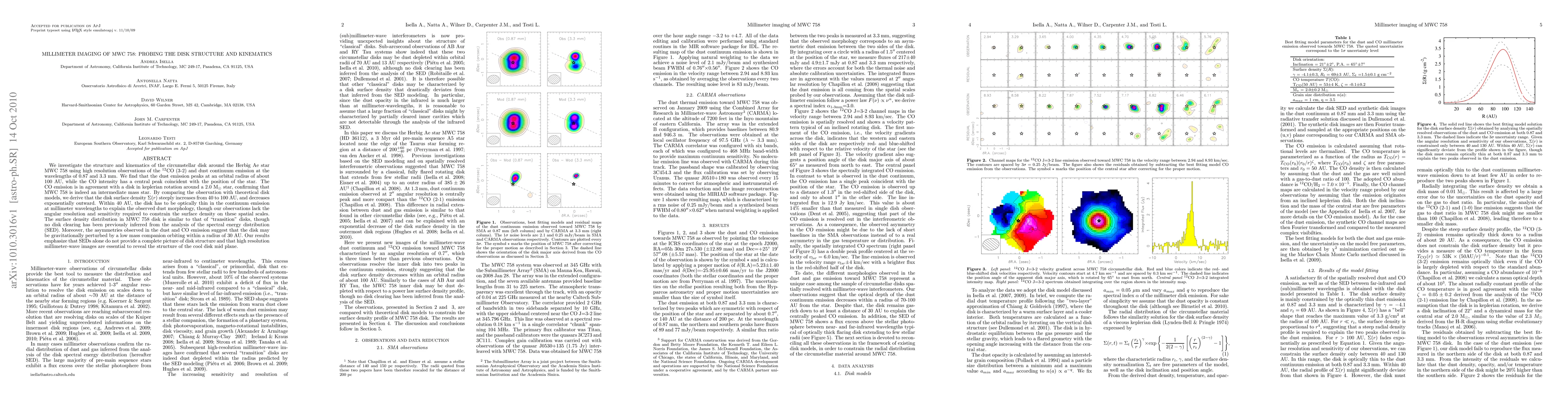 Researchers used millimeter-wave imaging to study the structure of MWC 758's circumstellar disk, finding a disk with steep surface density increase within 40 AU and possible gravitational perturbation by a low-mass companion.