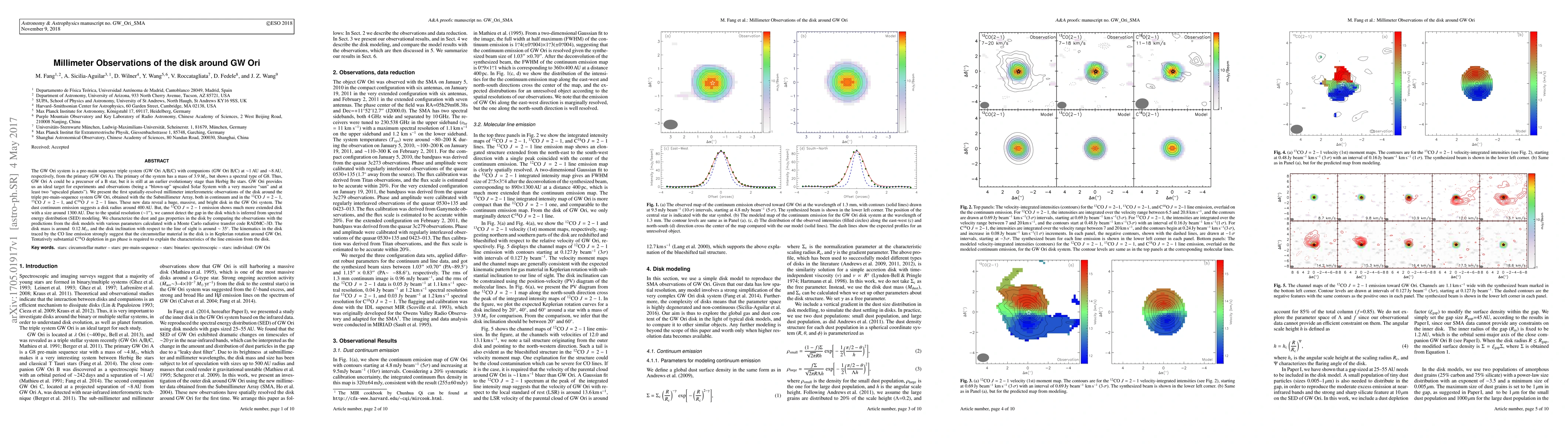 The GW Ori system is a pre-main sequence triple system (GW Ori A/B/C) with companions (GW Ori B/C) at $\sim$1 AU and $\sim$8 AU, respectively, from the primary (GW Ori A). The primary of the system has a mass of 3.9 $M_{\odot}$, but shows a spectral type of G8. Thus, GW Ori A could be a precursor of a B star, but it is still at an earlier evolutionary stage than Herbig Be stars. GW Ori provides us an ideal target for experiments and observations (being a "blown-up" upscaled Solar System with a very massive "sun" and at least two "upscaled planets"). We present the first spatially-resolved millimeter interferometric observations of the disk around the triple pre-main-sequence system GW Ori, obtained with the the Submillimeter Array, both in continuum and in the $^{12}{\rm CO} J=2-1$, $^{13}{\rm CO} J=2-1$, and ${\rm C^{18}O} J=2-1$ lines. These new data reveal a huge, massive, and bright disk in the GW Ori system. The dust continuum emission suggests a disk radius around 400 AU. But, the $^{12}{\rm CO} J=2-1$ emission shows much more extended disk with a size around 1300 AU. Due to the spatial resolution ($\sim$1$"$), we cannot detect the gap in the disk which is inferred from spectral energy distribution (SED) modeling. We characterize the dust and gas properties in the disk by comparing the observations with the predictions from the disk models with various parameters calculated with a Monte Carlo radiative transfer code RADMC-3D. The disk mass is around 0.12 $M_{\odot}$, and the disk inclination with respect to the line of sight is around $\sim$ 35$^\circ$. The kinematics in the disk traced by the CO line emission strongly suggest that the circumstellar material in the disk is in Keplerian rotation around GW Ori. Tentatively substantial ${\rm C^{18}O}$ depletion in gas phase is required to explain the characteristics of the line emission from the disk.