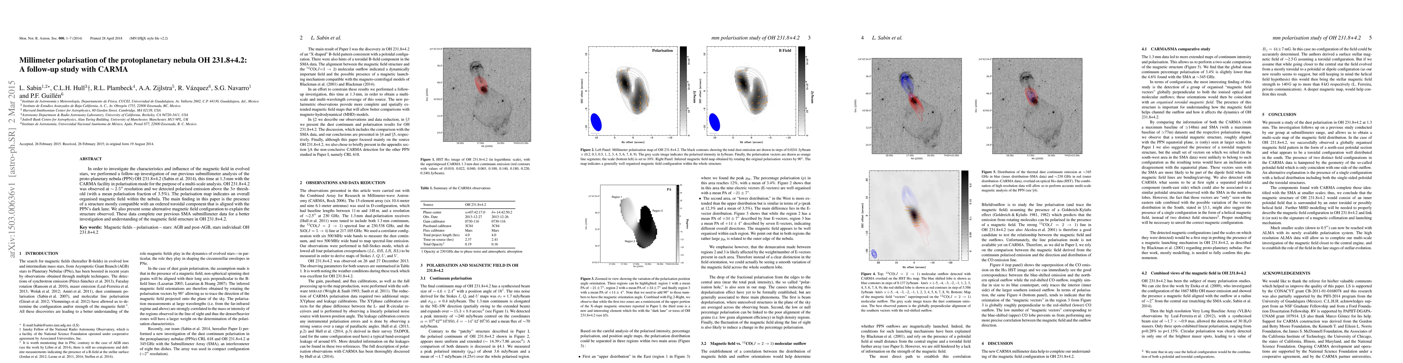 In order to investigate the characteristics and influence of the magnetic field in evolved stars, we performed a follow-up investigation of our previous submillimeter analysis of the proto-planetary nebula (PPN) OH 231.8+4.2 (Sabin et al. 2014), this time at 1.3mm with the CARMA facility in polarisation mode for the purpose of a multi-scale analysis. OH 231.8+4.2 was observed at ~2.5" resolution and we detected polarised emission above the 3-sigma threshold (with a mean polarisation fraction of 3.5 %). The polarisation map indicates an overall organised magnetic field within the nebula. The main finding in this paper is the presence of a structure mostly compatible with an ordered toroidal component that is aligned with the PPN's dark lane. We also present some alternative magnetic field configuration to explain the structure observed. These data complete our previous SMA submillimeter data for a better investigation and understanding of the magnetic field structure in OH 231.8+4.2.