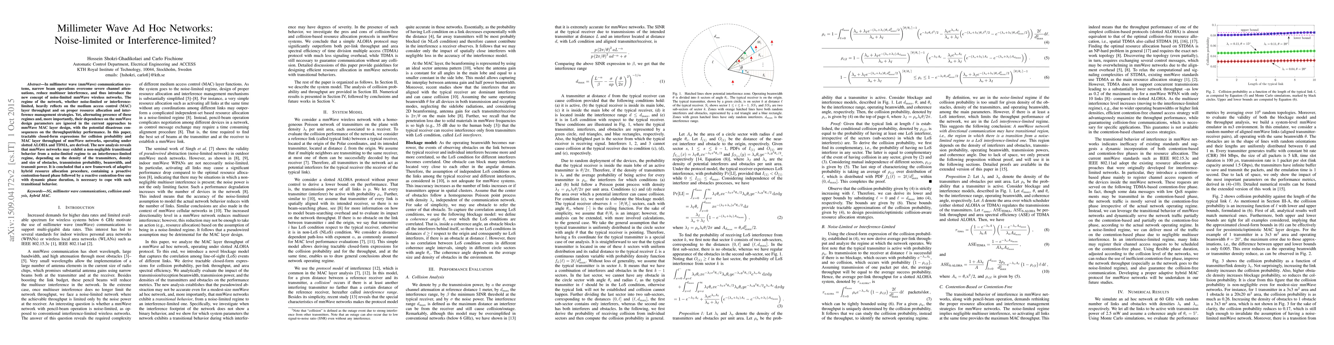 In millimeter wave (mmWave) communication systems, narrow beam operations overcome severe channel attenuations, reduce multiuser interference, and thus introduce the new concept of noise-limited mmWave wireless networks. The regime of the network, whether noise-limited or interference-limited, heavily reflects on the medium access control (MAC) layer throughput and on proper resource allocation and interference management strategies. Yet, alternating presence of these regimes and, more importantly, their dependence on the mmWave design parameters are ignored in the current approaches to mmWave MAC layer design, with the potential disastrous consequences on the throughput/delay performance. In this paper, tractable closed-form expressions for collision probability and MAC layer throughput of mmWave networks, operating under slotted ALOHA and TDMA, are derived. The new analysis reveals that mmWave networks may exhibit a non-negligible transitional behavior from a noise-limited regime to an interference-limited regime, depending on the density of the transmitters, density and size of obstacles, transmission probability, beamwidth, and transmit power. It is concluded that a new framework of adaptive hybrid resource allocation procedure, containing a proactive contention-based phase followed by a reactive contention-free one with dynamic phase durations, is necessary to cope with such transitional behavior.