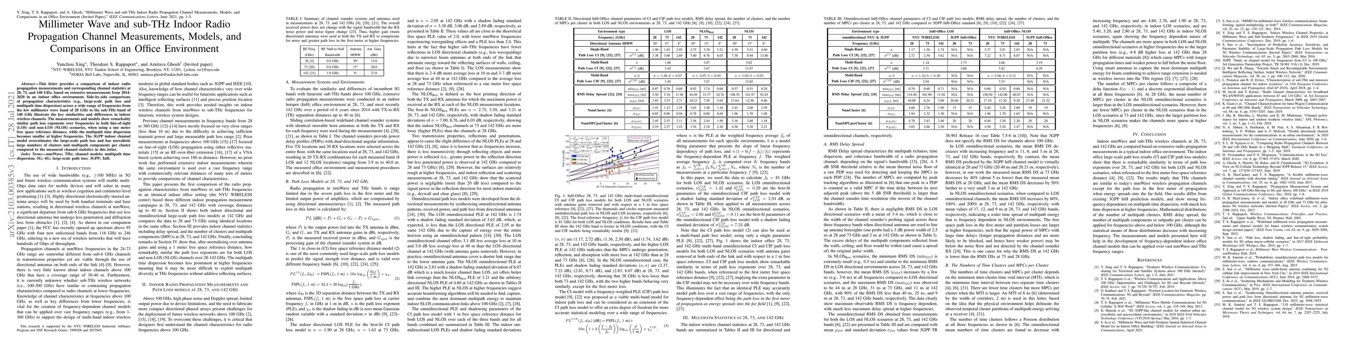 This paper compares indoor radio propagation measurements at 28, 73, and 140 GHz, revealing similar path loss exponents across frequencies but smaller multipath time dispersion at higher frequencies. The 3GPP model overestimates path loss and multipath complexity compared to the measured data.