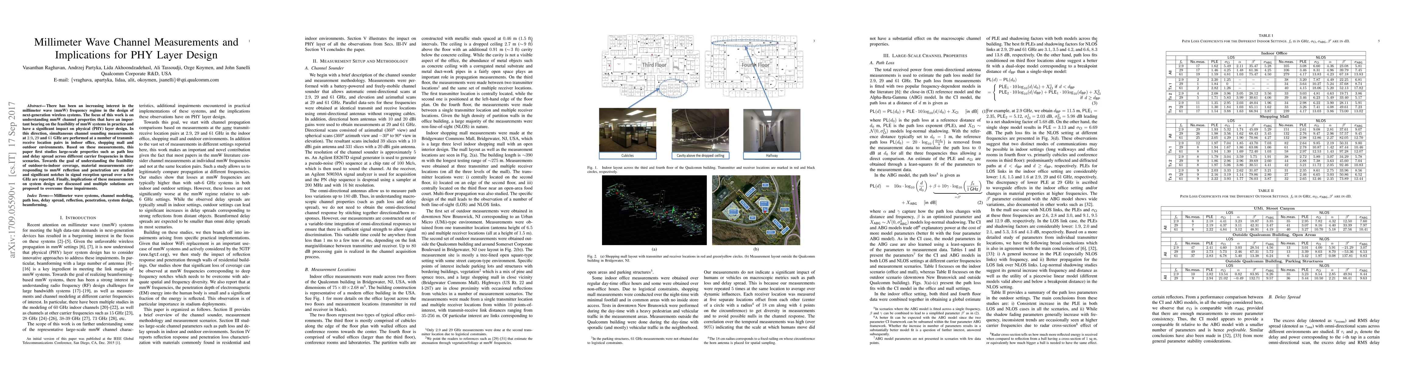 This paper investigates millimeter wave channel properties at 2.9, 29, and 61 GHz in various environments, analyzing path loss, delay spread, and material penetration effects to inform physical layer design for next-generation wireless systems. Proposed solutions aim to mitigate the challenges identified for practical mmW system implementation.