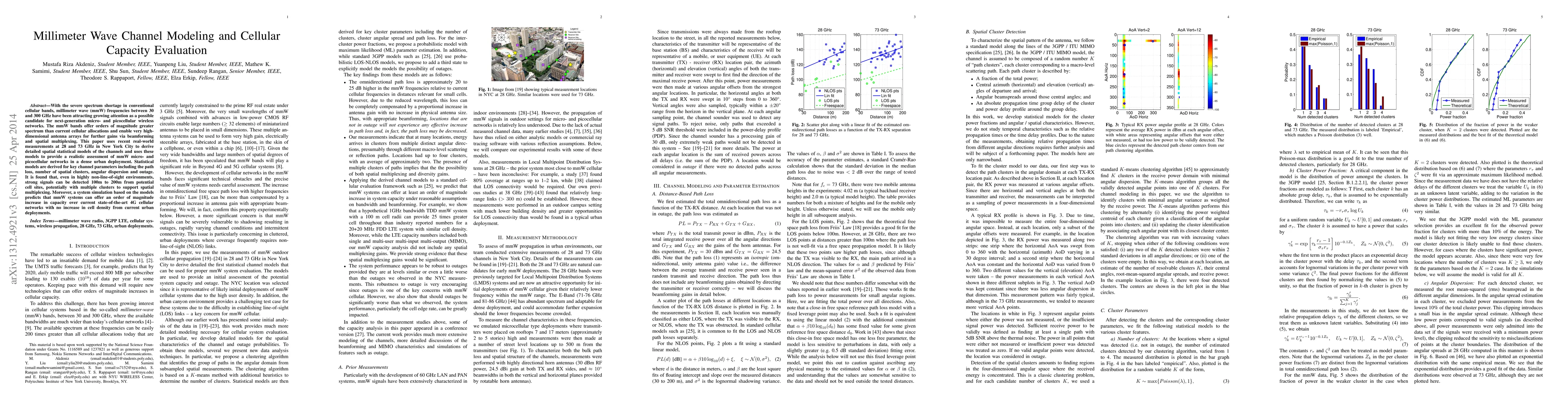 This paper models millimeter wave channels using real-world measurements in New York City, finding strong signals up to 200 m in urban areas, and predicts a tenfold increase in cellular capacity for next-generation mmW networks compared to current 4G systems.
