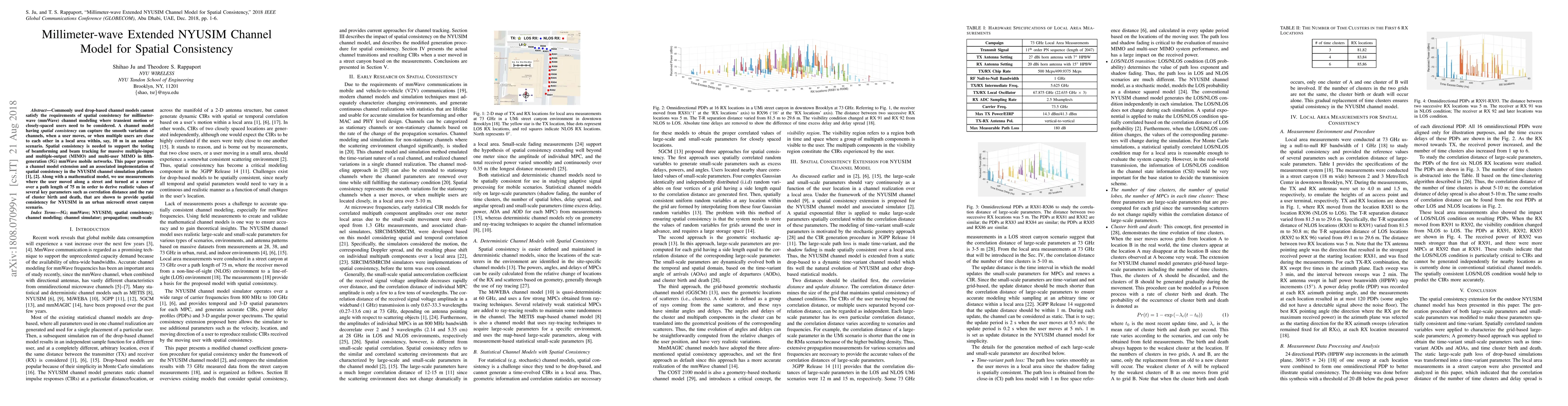 This paper extends the NYUSIM channel model to achieve spatial consistency for millimeter-wave communications, addressing the limitations of drop-based models in capturing smooth channel variations during user movement. The extended model, validated through measurements in urban microcell scenarios, provides realistic values for key parameters to support beamforming and tracking in 5G mmWave networks.