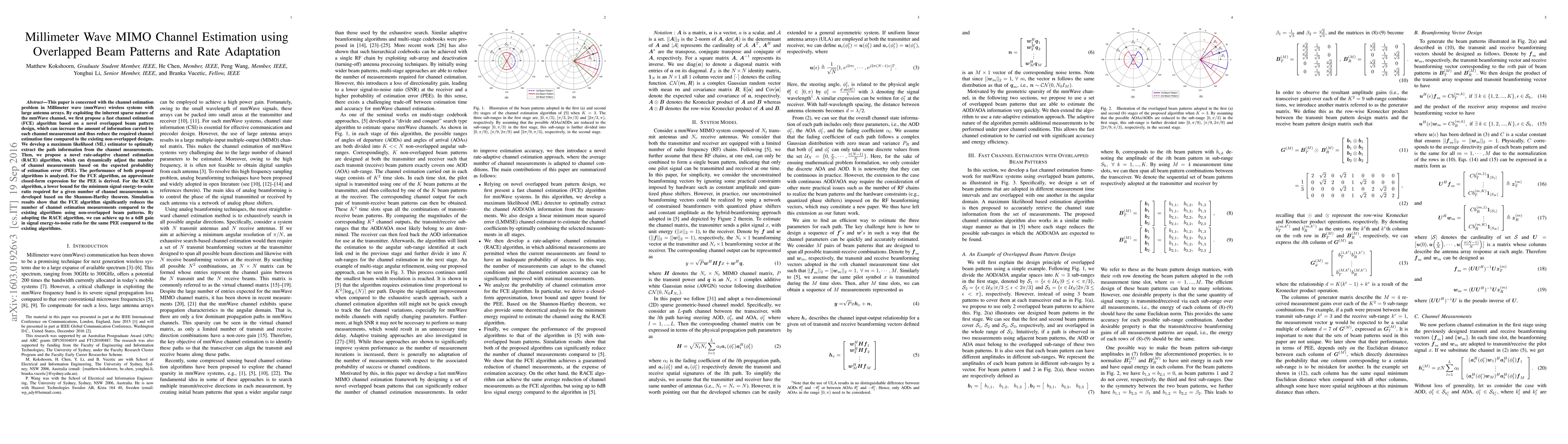 Researchers propose two algorithms to improve channel estimation in millimeter wave wireless systems: a fast channel estimation algorithm using overlapped beam patterns and a rate-adaptive channel estimation algorithm that dynamically adjusts the number of measurements based on error probability.