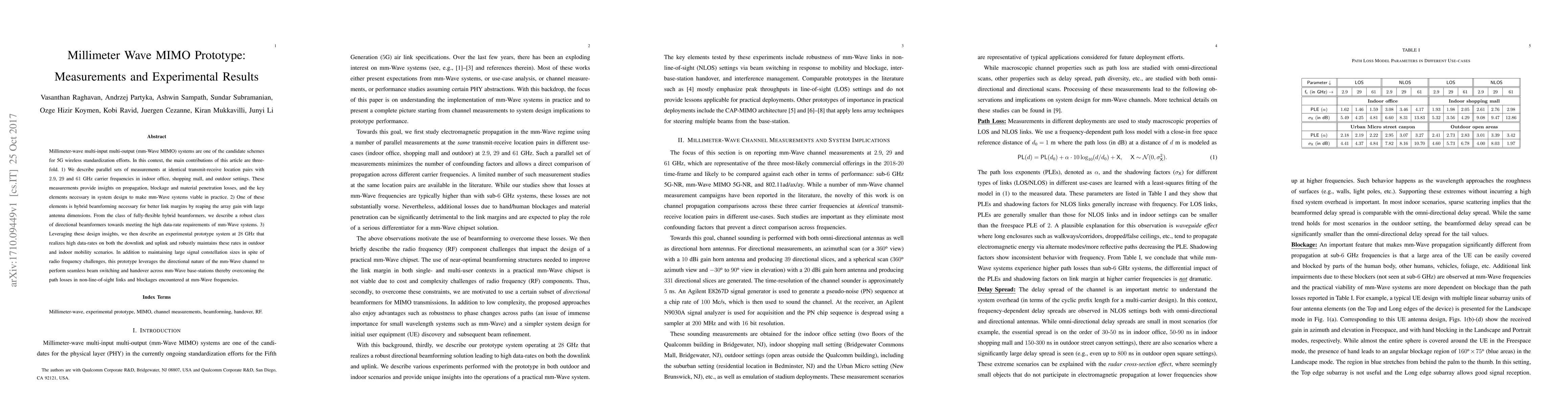 Millimeter-wave multi-input multi-output (mm-Wave MIMO) systems are one of the candidate schemes for 5G wireless standardization efforts. In this context, the main contributions of this article are three-fold. 1) We describe parallel sets of measurements at identical transmit-receive location pairs with 2.9, 29 and 61 GHz carrier frequencies in indoor office, shopping mall, and outdoor settings. These measurements provide insights on propagation, blockage and material penetration losses, and the key elements necessary in system design to make mm-Wave systems viable in practice. 2) One of these elements is hybrid beamforming necessary for better link margins by reaping the array gain with large antenna dimensions. From the class of fully-flexible hybrid beamformers, we describe a robust class of directional beamformers towards meeting the high data-rate requirements of mm-Wave systems. 3) Leveraging these design insights, we then describe an experimental prototype system at 28 GHz that realizes high data-rates on both the downlink and uplink and robustly maintains these rates in outdoor and indoor mobility scenarios. In addition to maintaining large signal constellation sizes in spite of radio frequency challenges, this prototype leverages the directional nature of the mm-Wave channel to perform seamless beam switching and handover across mm-Wave base-stations thereby overcoming the path losses in non-line-of-sight links and blockages encountered at mm-Wave frequencies.