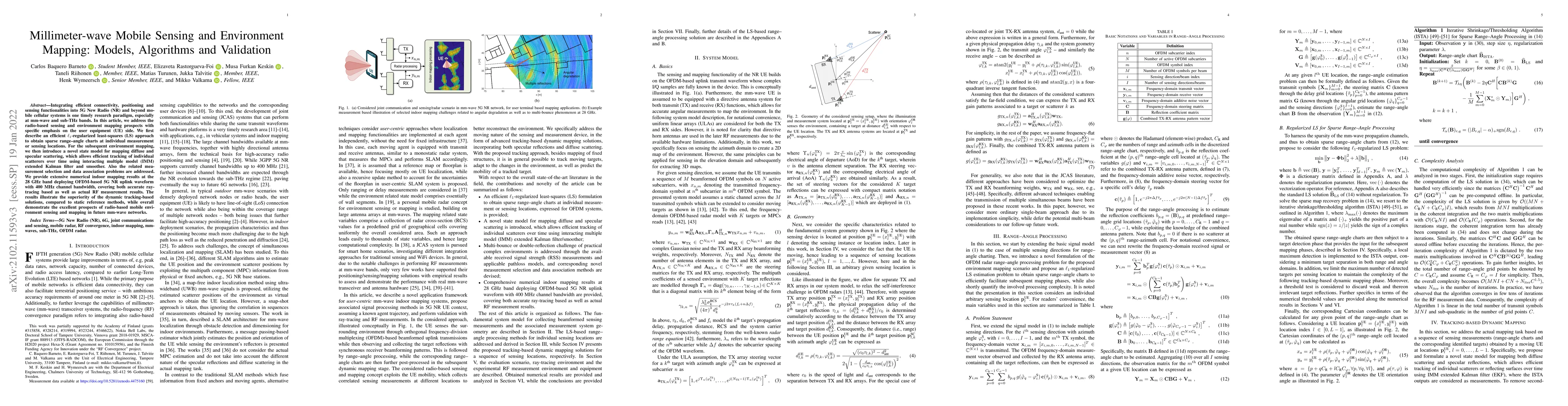 This paper proposes efficient algorithms for millimeter-wave mobile sensing and environment mapping, utilizing 5G NR technology. It introduces an l1-regularized least-squares approach for sparse range-angle charts and a novel state model for tracking scatterers, validated with extensive indoor mapping results at 28 GHz.